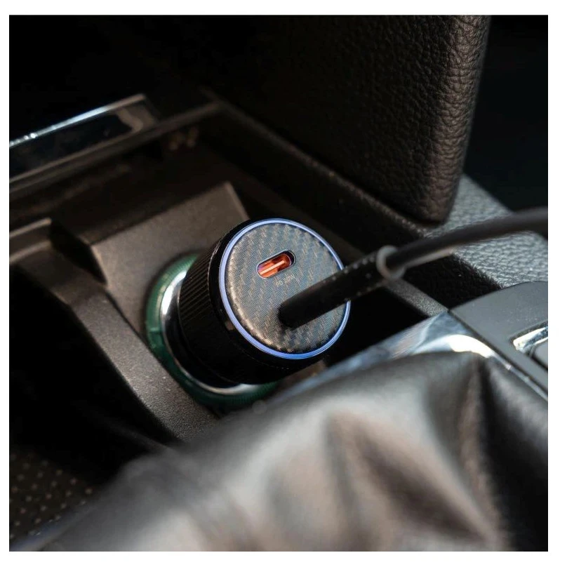 Автомобільний зарядний пристрій Swissten з двома портами USB-C та підтримкою PD 3.0 пропонує загальну потужність до 50 Вт, що дозволяє миттєво та безпечно заряджати два пристрої одночасно.