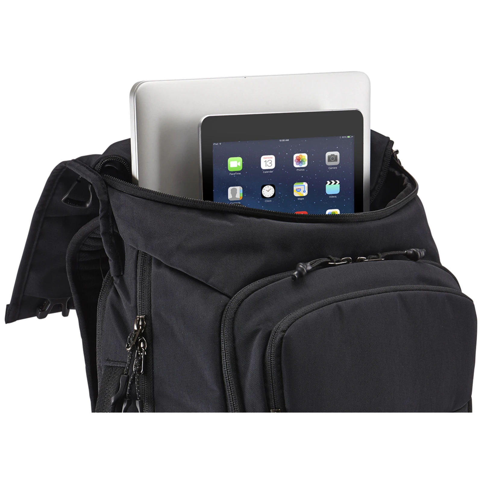 Стильний рюкзак Paramount Backpack 29L від Thule дуже зручний і продуманий до дрібниць. Загальний об'єм рюкзака становить 29 л, а доступ до нього можна отримати двома способами: зверху через основний отвір або збоку через бічні блискавки. Основний доступ захищений кришкою на блискавці та пряжках. Всередині рюкзака є м'яке відділення з подвійним захистом і конструкцією SafeEdge для 14-дюймового ноутбука або 15-дюймового MacBook®, а також м'яка захисна кишеня для 10-дюймового планшета.