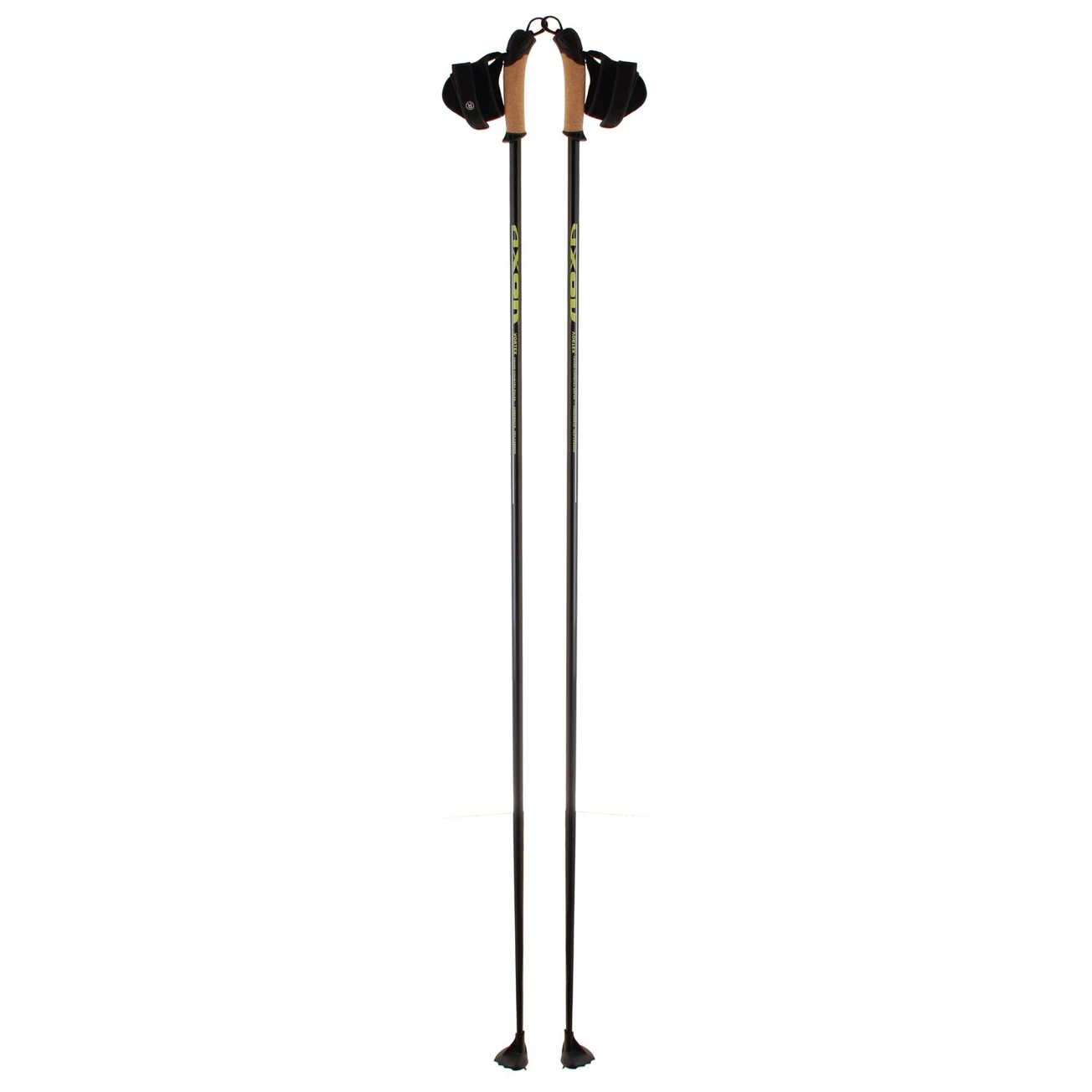 Бігові карбонові палиці AKTIV PROFI від чеського бренду Axon, для ковзанярів і класиків, з 50% карбону з корковою ручкою, регульованим ремінцем і кільцем діаметром 60 мм.