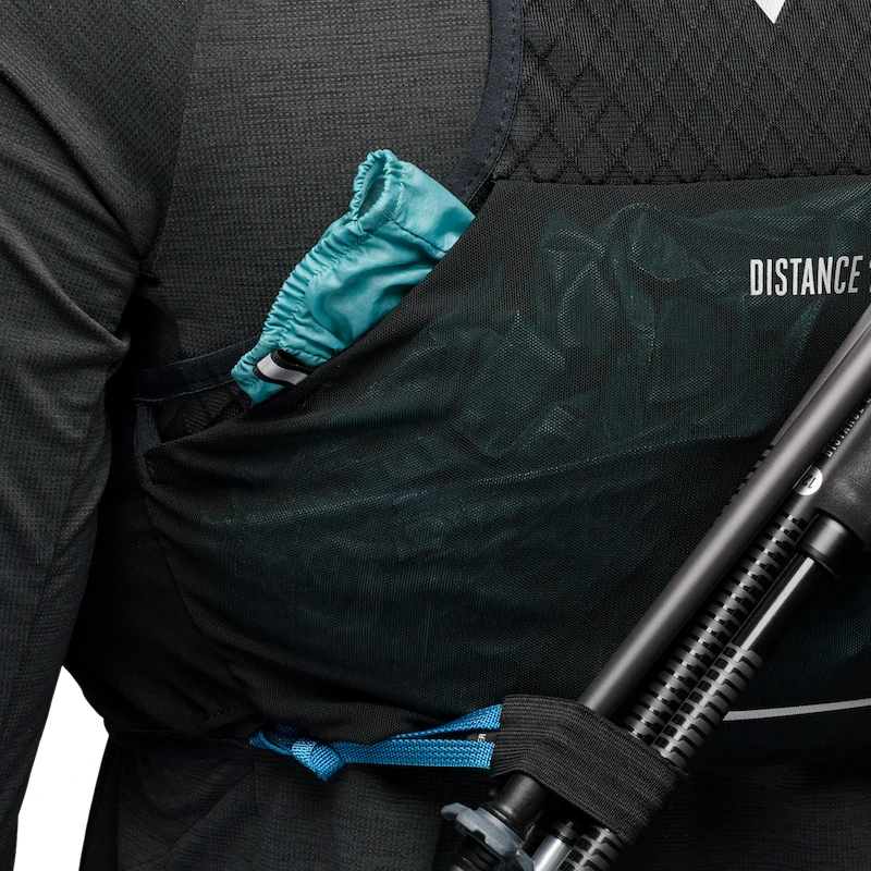 Жилетка має продумані кишені та систему для зберігання м'яких пляшок, щоб вантаж не підстрибував. Дві пляшки об'ємом 500 мл розташовані на грудях, де до них легко дістатися. Задня кишеня на стегнах ідеально підходить для більшого спорядження, передня кишеня на блискавці призначена для цінних речей. Знімний тримач Z-pole служить для кріплення трекінгових палиць. Світловідбиваючі елементи- це само собою зрозуміло.