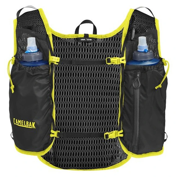 До комплекту входять дві м'які пляшки Quick Stow Flask об'ємом 0,5 л (всього 1 л), і жилет також сумісний з резервуаром Crux™ об'ємом 1,5 л. Стабільність під час бігу забезпечує подвійний нагрудний ремінь, безпеку підвищують світловідбиваючі елементи та інтегрований свисток. Жилет для трейлового бігу Camelbak – це ідеальний вибір для трейлових забігів, ультрамарафонів та тривалих гірських сходжень, де вирішальне значення мають комфорт, невелика вага та швидкий доступ до спорядження.