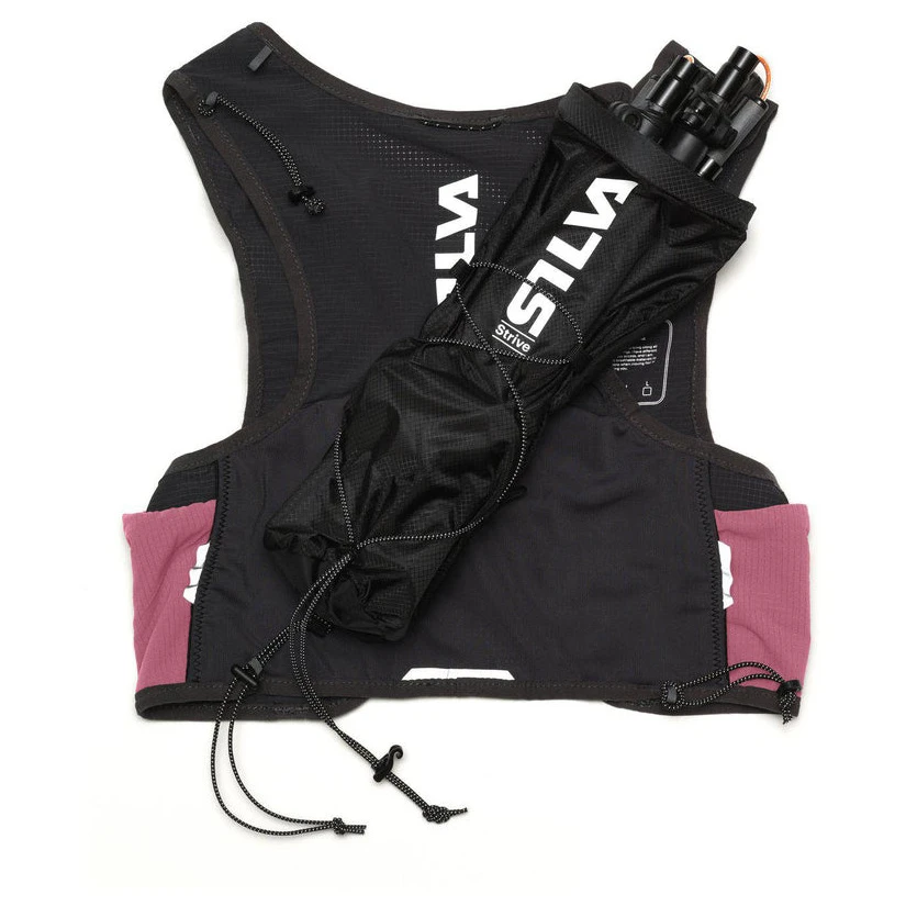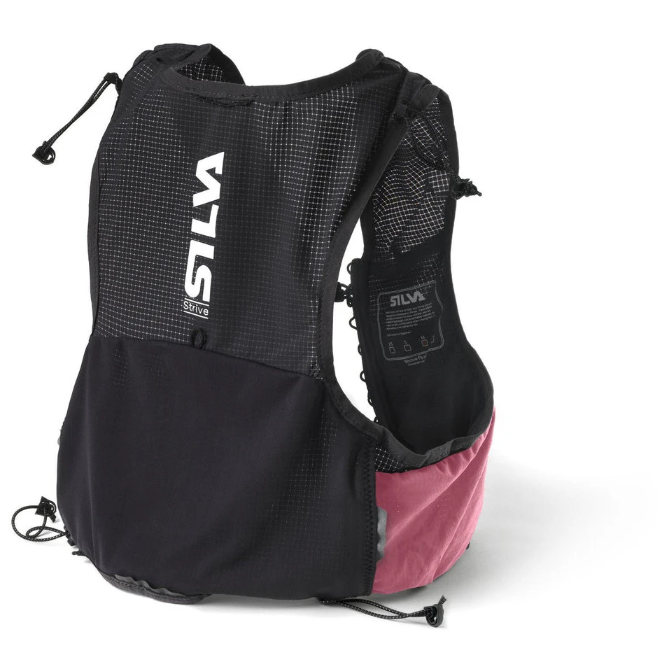 Біговий жилет Strive 5 від Silva на 24% легший за попередню модель Strive Light 5, має покращену посадку та виготовлений із легкого нейлону ripstop і дихаючої сітки. Плечові лямки м'які, а кишені вміщують 2 м'які пляшечки по 500 мл. Жилет має дві кишені на блискавці, гачок для ключів, свисток та світловідбиваючі елементи.