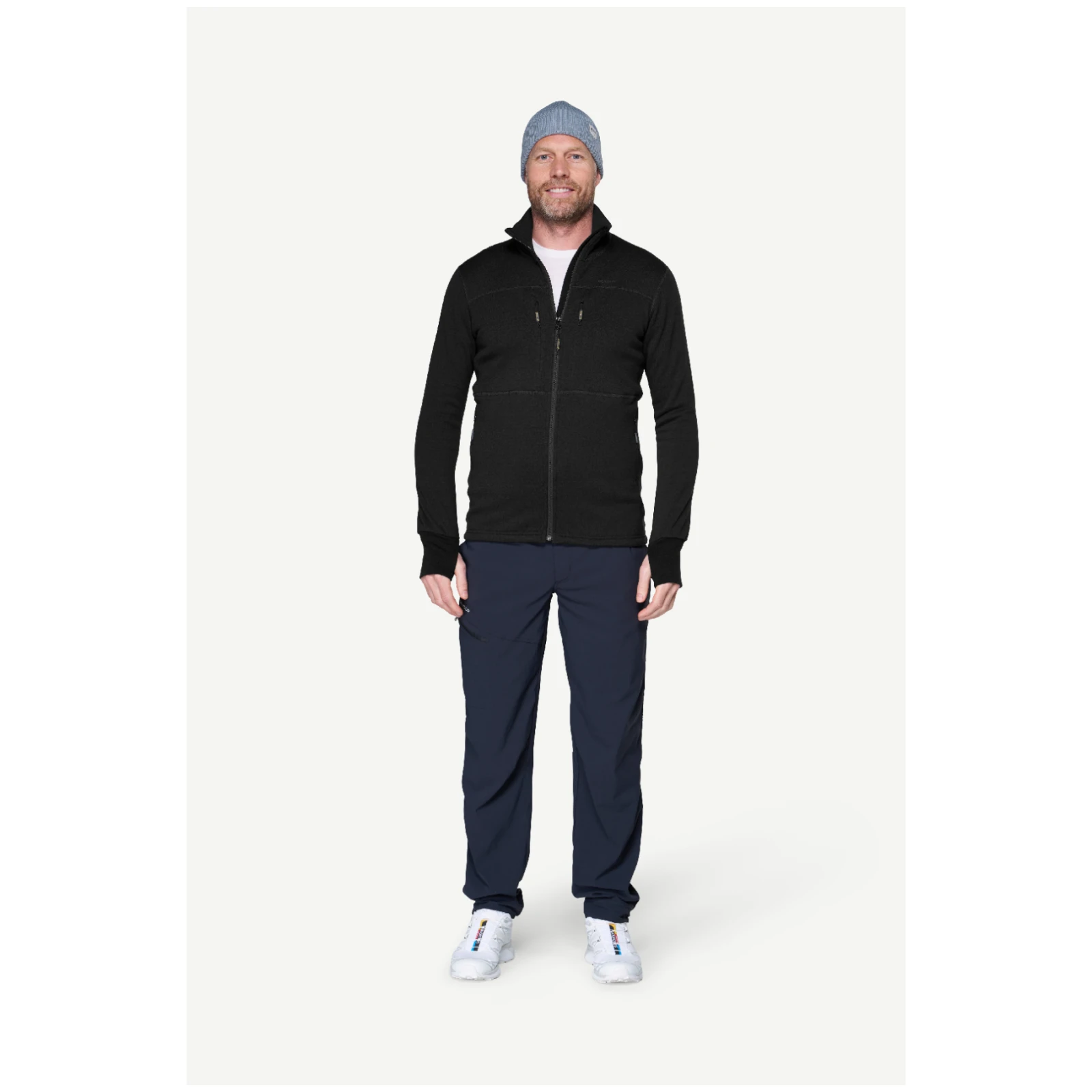 Egga також має високий комір-стійку з захистом підборіддя, двосторонню застібку-блискавку, регульований низ і манжети з отворами для великих пальців, щоб запобігти закочуванню рукавів. Потім ви можете зберігати свої речі в двох нагрудних кишенях на блискавці або в двох бічних кишенях на блискавці.