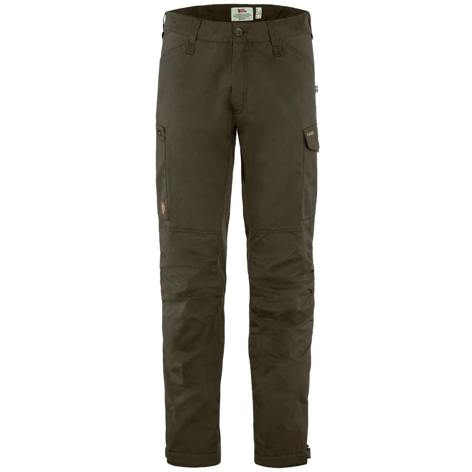 Штани Kaipak Trousers від Fjällräven розроблені для того, щоб так само добре працювати на стежці, як і в місті. Артикульована посадка разом з еластичними панелями на задній панелі, промежині та задній частині колін забезпечують велику свободу рухів. Основна тканина - міцний матеріал G-1000 Eco, який витримує вітер і короткочасні зливи та може бути оброблений спеціальним гренландським воском. Це забезпечить додатковий захист і збільшить довговічність матеріалу. Серед інших особливостей - дві кишені для рук, дві кишені на стегнах, петлі для ременя та кінці штанин з регульованими гачками для подолу та черевиків.