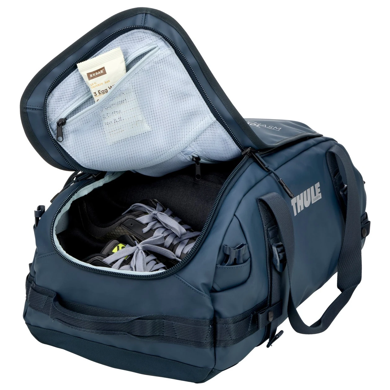 Дуже гарна спортивна сумка Thule Chasm 40L - ідеальний вибір для коротких або багатоденних мандрівок, що забезпечує достатньо місця для зберігання необхідного спорядження. Складається з просторого основного відділення з надшироким входом, двох внутрішніх сітчастих кишень на блискавці та однієї зовнішньої кишені на блискавці.