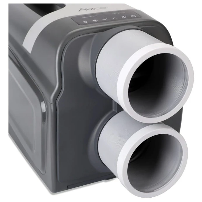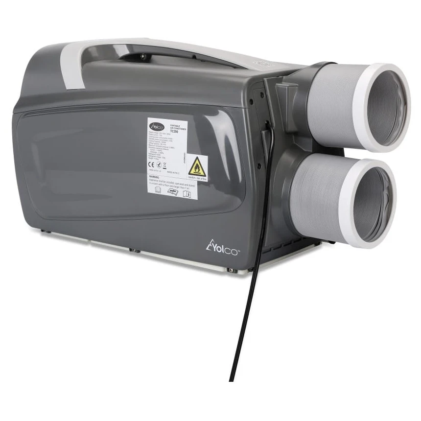 Кондиціонер обладнаний гнучкими вхідними та вихідними трубами, які пристосовуються до простору. Практична ручка полегшить перенесення. Компактні розміри роблять з TC390 ідеального компаньйона на дачі, в каравані або в невеликому офісі.