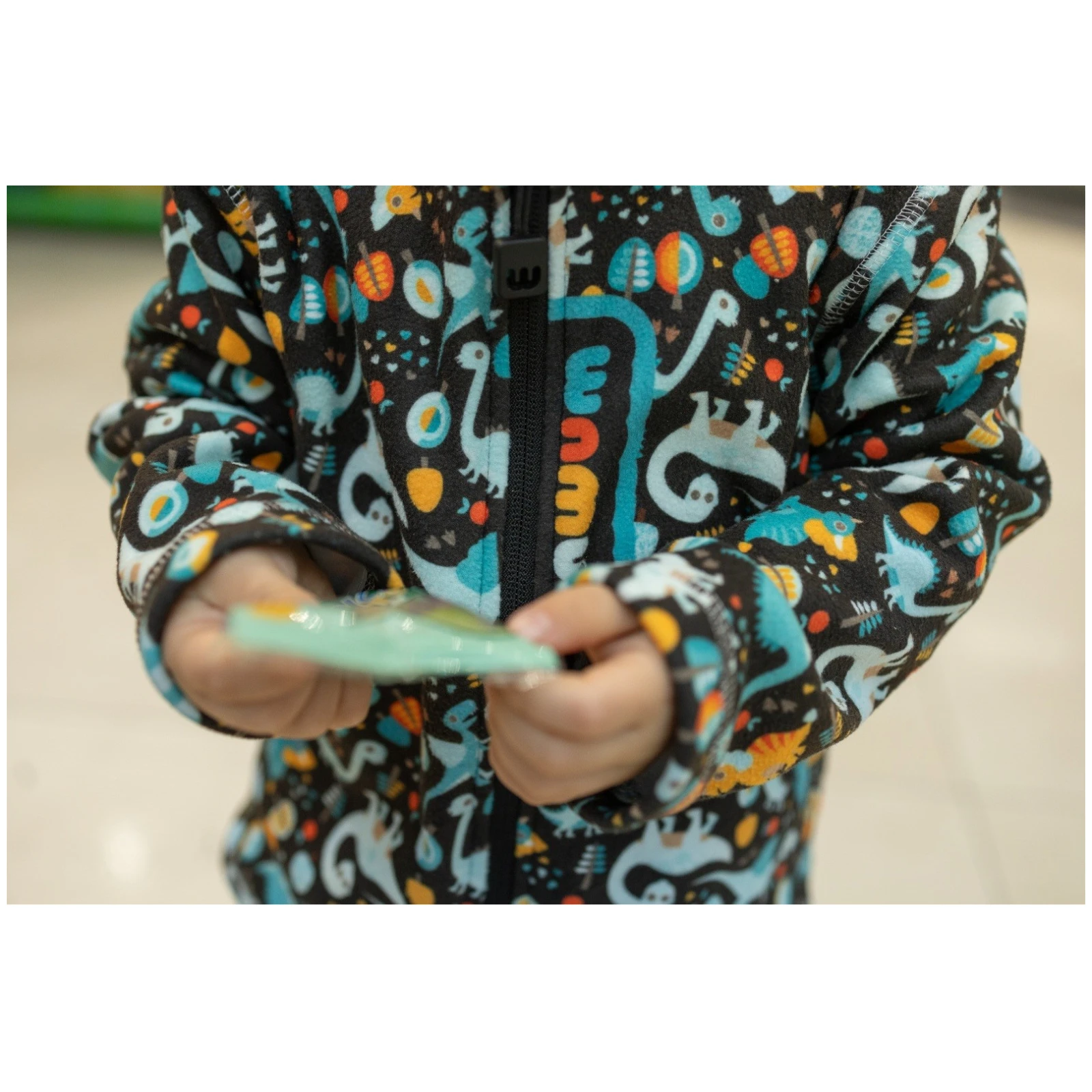 Дитяча флісова кофта Wamu з візерунком динозаврів, яка запалить очі кожному любителю доісторичного світу. Гарантує тепловий комфорт, має чудові ізоляційні властивості.