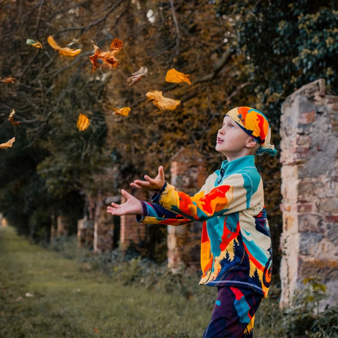 Легкий еластичний матеріал з перероблених волокон є дуже ніжним, швидковисихаючим і приємним на дотик. У холодну погоду захищає від погодних умов, у теплі ефективно відводить вологу і допомагає зберегти комфорт під час руху. Завдяки стильному дизайну та низькій вазі шарф є ідеальним цілорічним аксесуаром для дітей і дорослих.