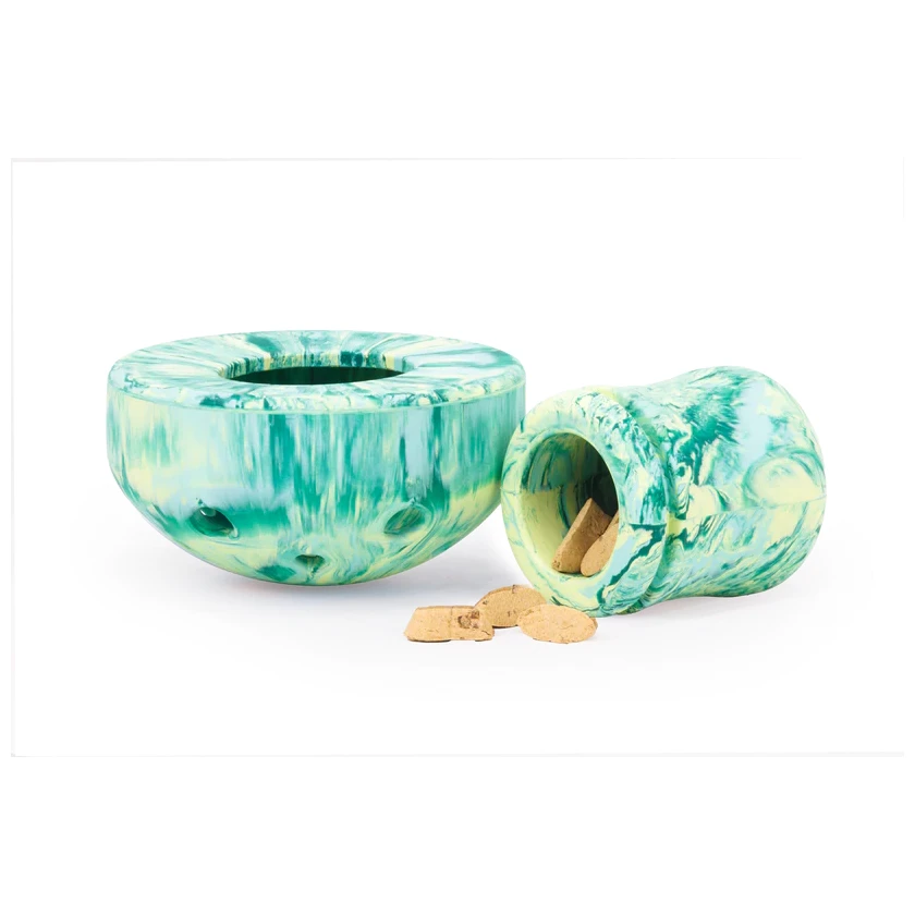 Форма губки розділена на дві частини за допомогою застібки, яка дозволяє наповнити простір всередині дрібними ласощами чи гранулами. Собака повинна обертати іграшку, поступово висипаючи корм, що безпечним способом займає мозок собаки, зміцнює його інстинкти і дозволяє собакам природно розважатися. Цей спосіб гри чудово підходить як для цуценят, так і для дорослих собак, а також у випадках, коли стан здоров'я собаки вимагає спокійного режиму.