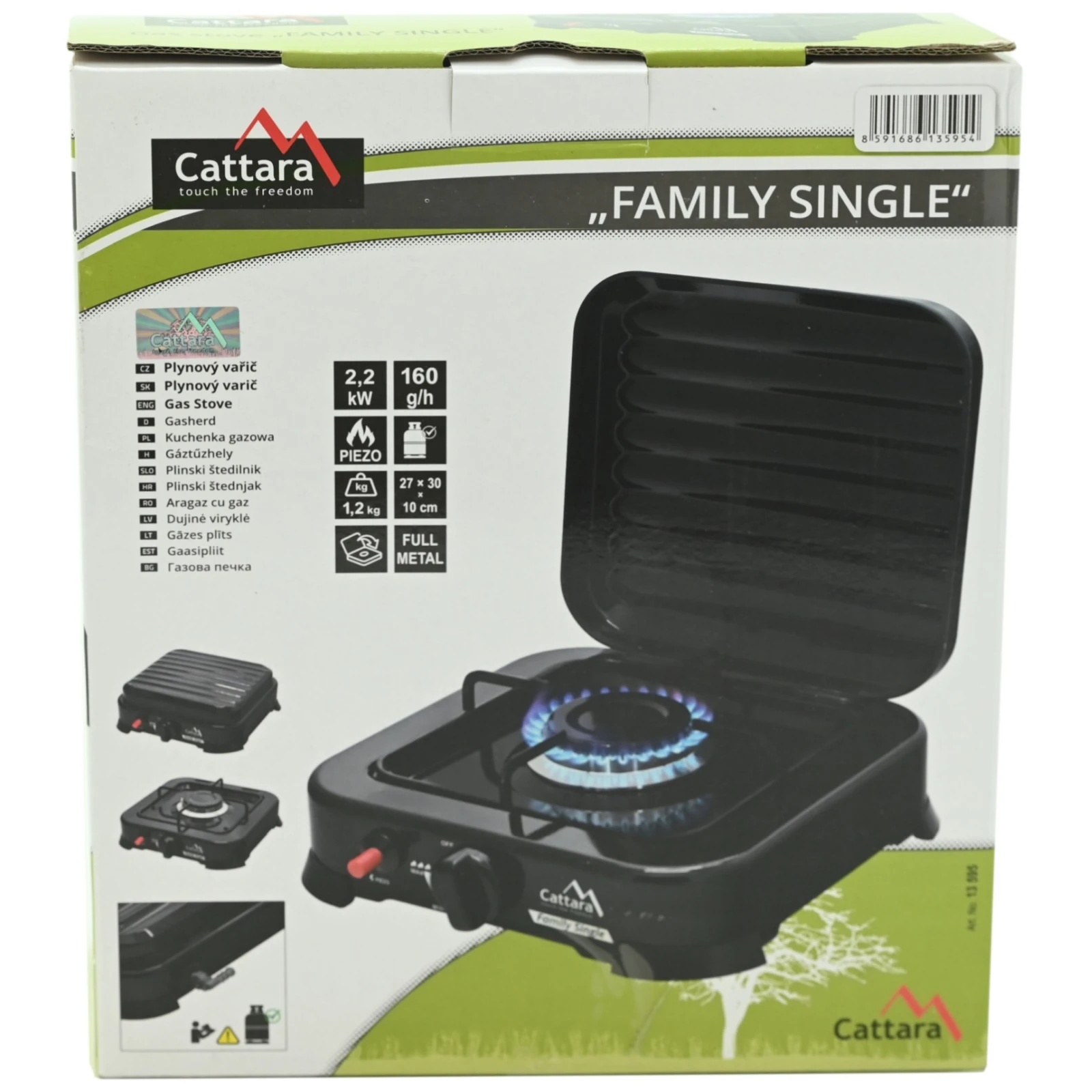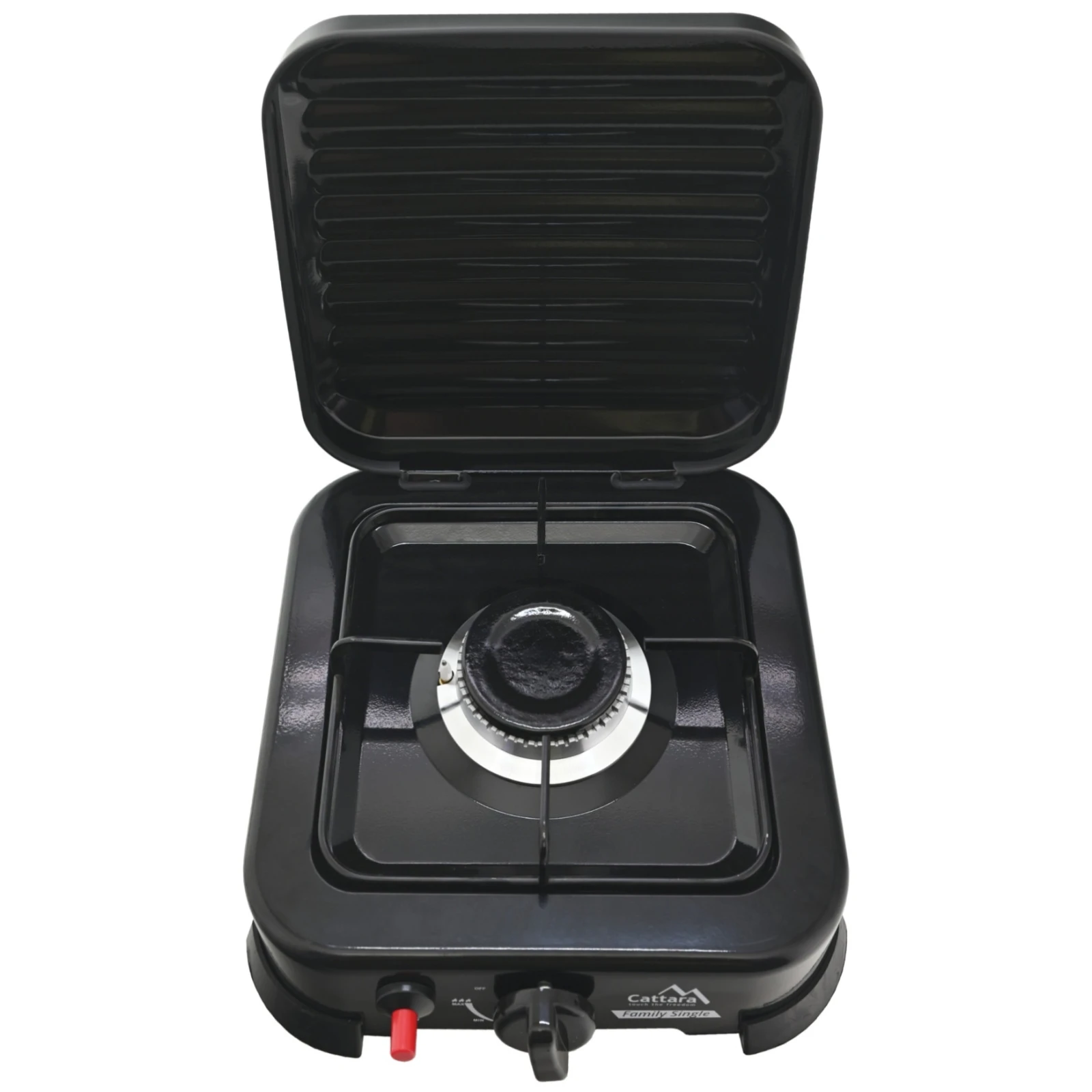 Газовий пальник Cattara Traveler пропонує просте управління та надійну роботу завдяки п'єзо запалюванню та плавно регульованому потоку газу.