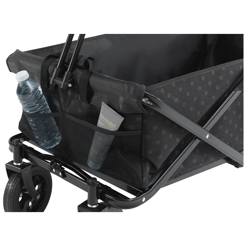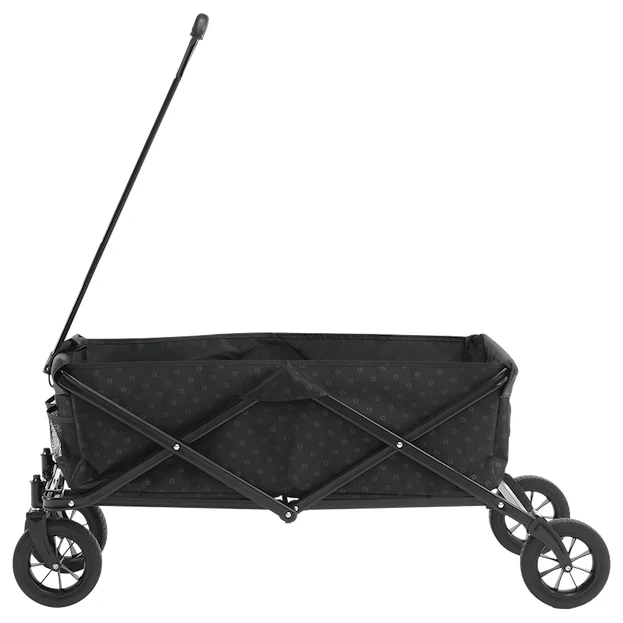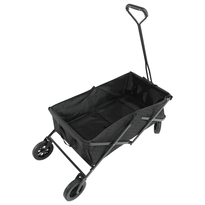 Візок оснащений високоміцною та зносостійкою конструкцією з порошкової сталі, завдяки якій його можна скласти та розкласти за кілька секунд. Серед інших переваг – міцні колеса з поліуретану, з якими вам не доведеться боятися навіть нерівної місцевості. Колеса також стійкі до проколів та ударів . Ви також оціните телескопічну ручку, яку можна висунути до 120 см від землі та зафіксувати у вертикальному положенні. З зовнішнього боку є дві сітчасті кишені. Включає сумку для зручного зберігання та перенесення.