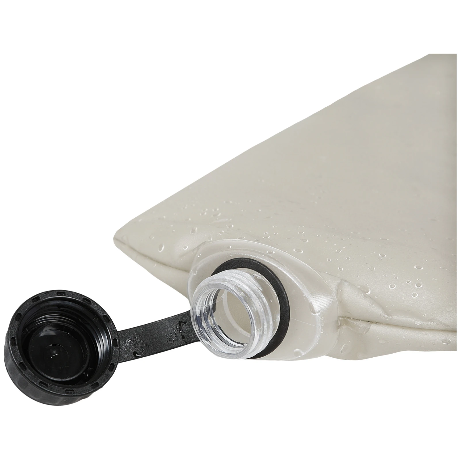 Пляшка виготовлена з 100 % TPU матеріалу, який є гнучким, міцним і водночас BPA free, тому підходить для багаторазового використання навіть у складних умовах. Після споживання її можна легко скласти, і вона займе мінімум місця, що особливо зручно під час перенесення в рюкзаку. Одна сторона пляшки оснащена широким горлечком зі слайдерною кришкою, що полегшує наповнення та чищення. На слайдері також є отвір для підвішування. На іншій стороні знаходиться кришка діаметром стандартної ПЕТ пляшки, яка сумісна з фільтрами Sawyer. Завдяки цьому пляшку можна використовувати для фільтрації води в польових умовах, що підвищує її практичність під час активного відпочинку.