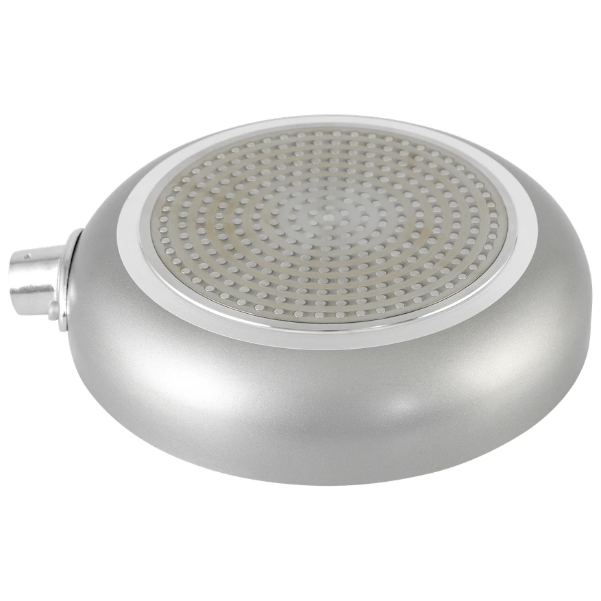 Виготовлена з якісного алюмінію та покрита керамічним покриттям, яке є антипригарним під час приготування і чудово миється. Ергономічні м'які ручки міцні та надійні. У сковороди ручку можна відкрутити, як і у горщика для сосисок. Підходить для використання на більшості плит, включаючи індукційні. Їх не можна нагрівати в мікрохвильовій печі, і не кладіть їх у звичайну духовку.