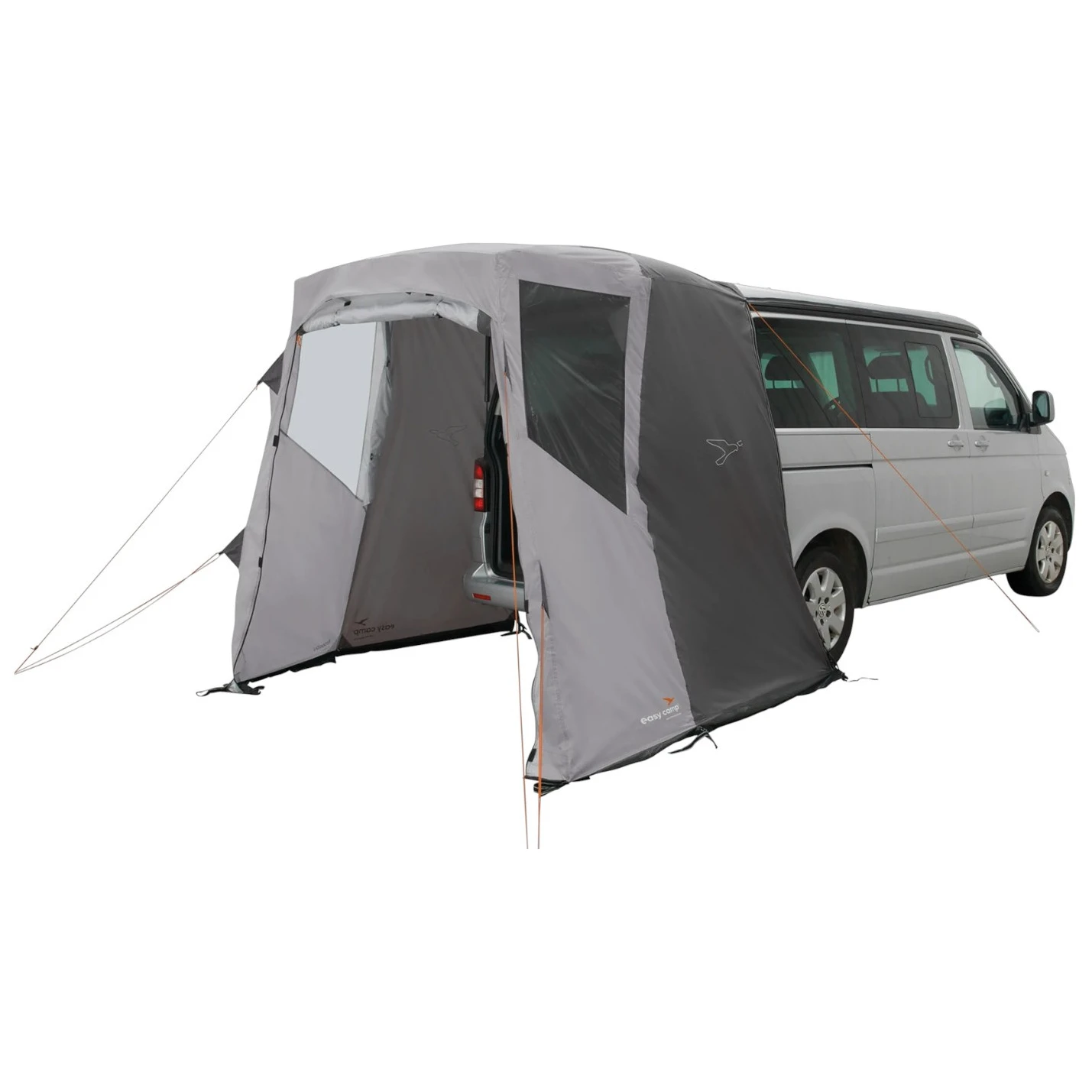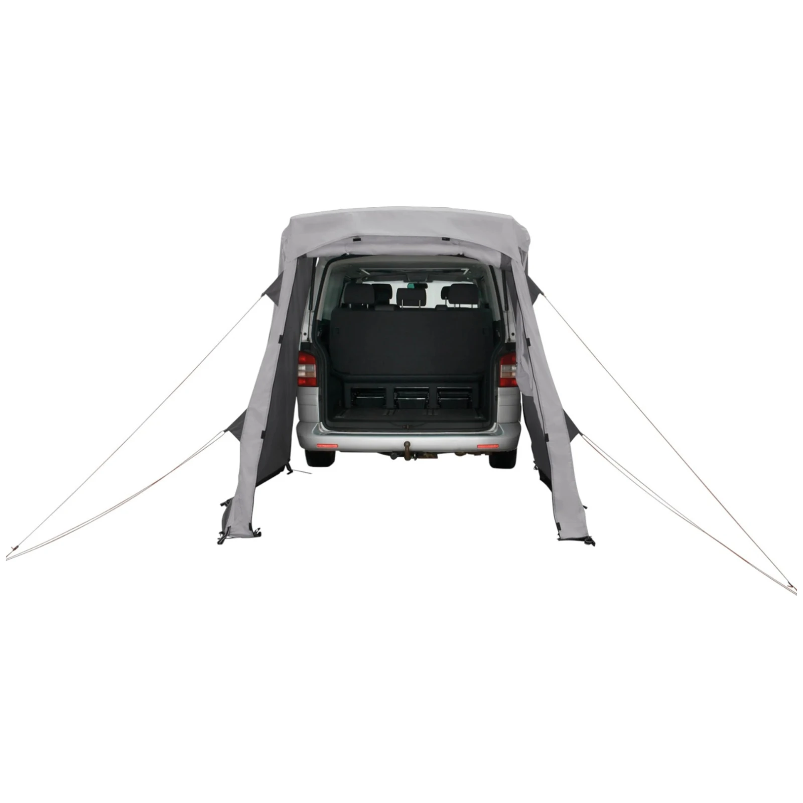 Сумісний з автомобілями VW T5/T6/T6.1 (Multivan, Caravelle, Transporter, California), MB W639/W447 (V-Class, Vito, Marco Polo) та подібними моделями. Передній вхід легко перетворюється на тент, опорні сталеві дуги входять до комплекту. Комфорт забезпечують бічні вікна з шторками та вентиляція під навісом у передній частині.