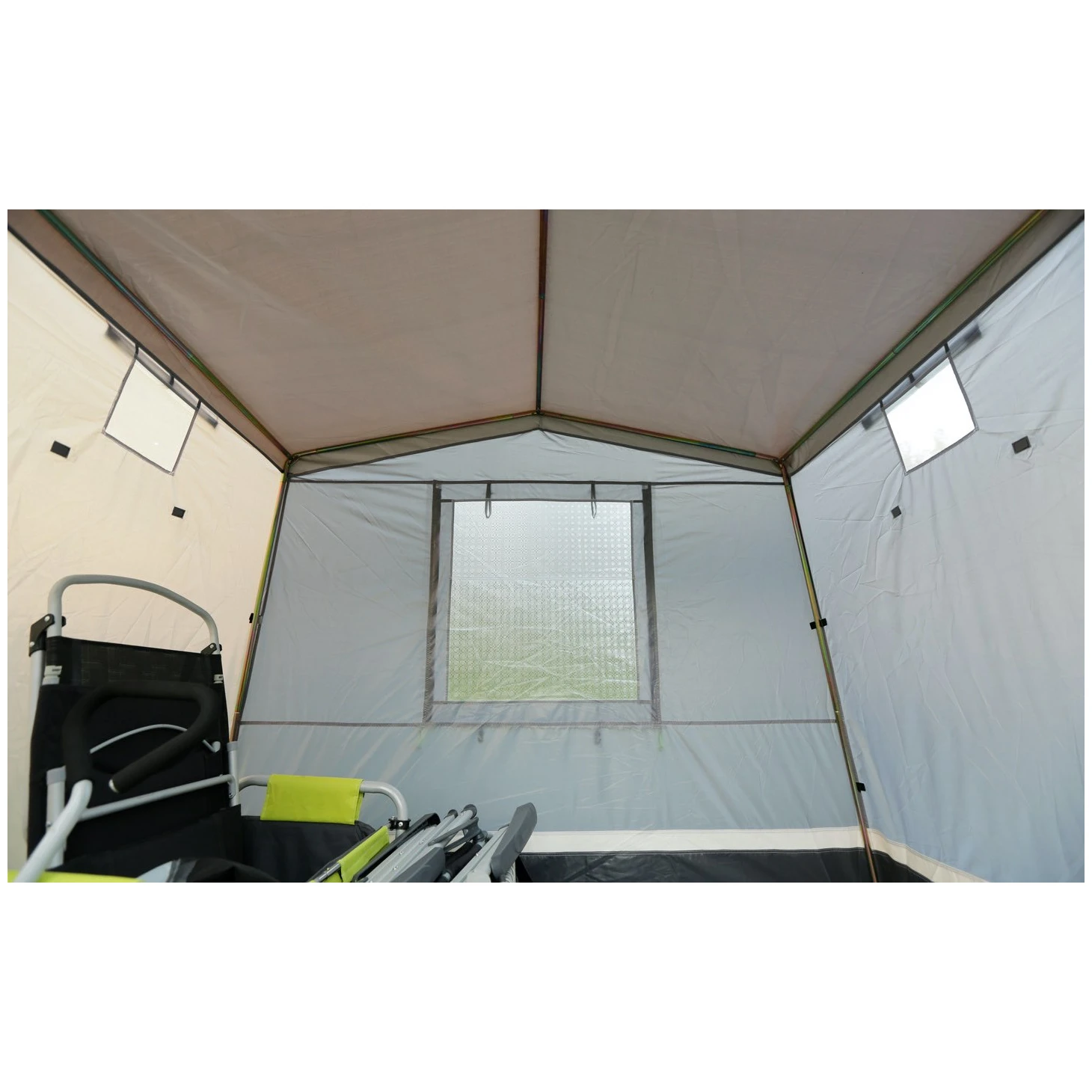 Достатній приплив денного повітря і захист від комах забезпечують 3 вікна з москітними сітками (1 велике і 2 малих), які також доповнені шторою. Вхід до намету забезпечений великим фронтальним входом, який можна перетворити на просторий навіс.