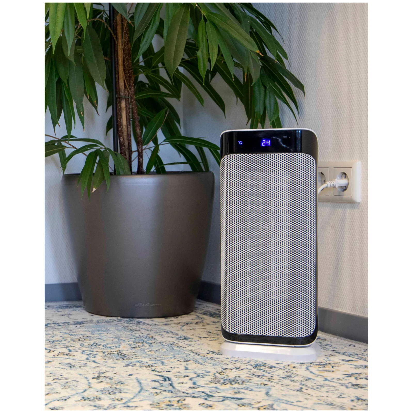 Цей керамічний обігрівач оснащений РК-дисплеєм, пультом дистанційного керування та функцією таймера, що робить його експлуатацію простою та зручною. Також є функції безпеки, такі як захист від перегріву і захист від перекидання, щоб забезпечити вам спокій навіть при тривалому використанні.