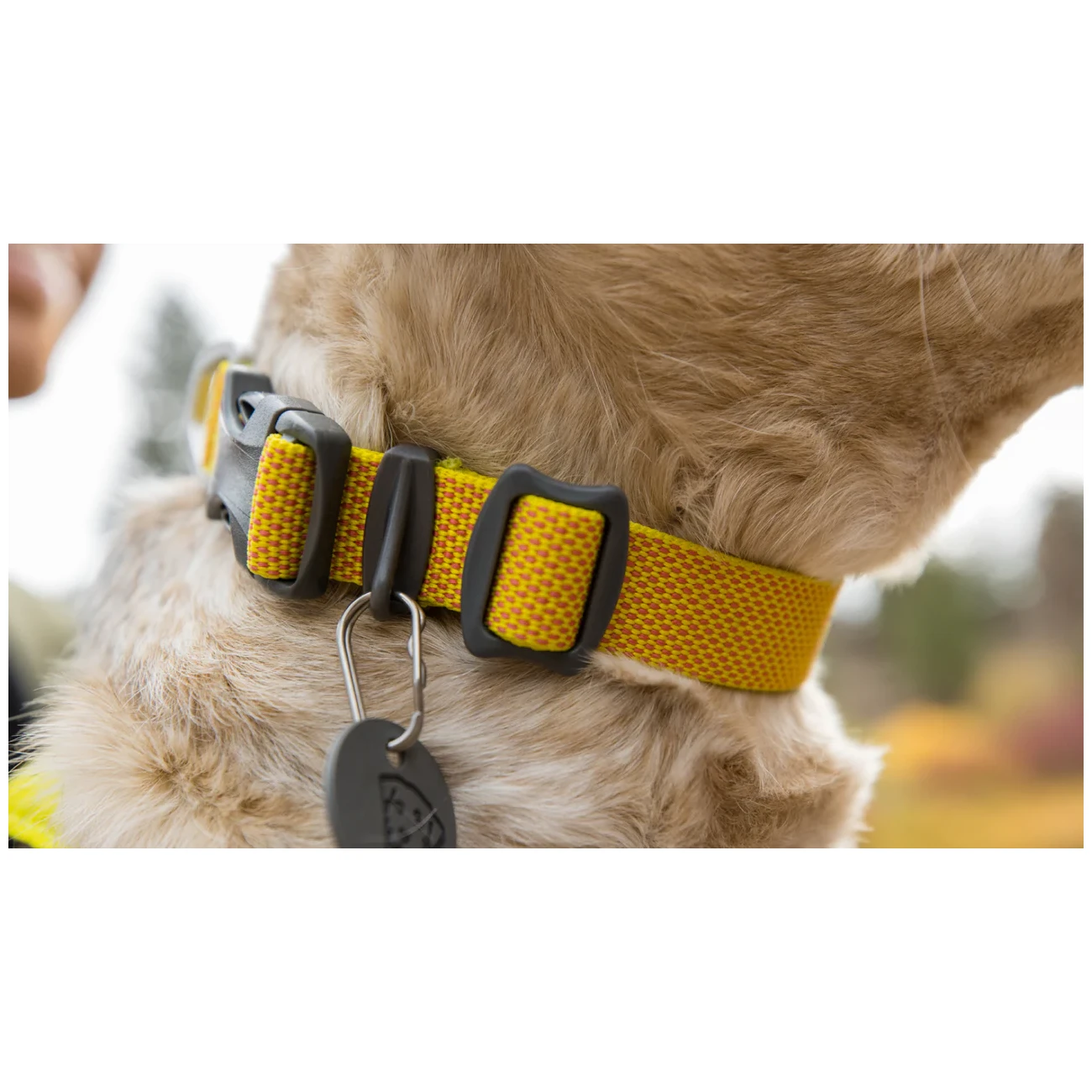 Окрім цікавого дизайну, нашийник пропонує міцний, але водночас низькопрофільний та легкий ремінь, натхненний альпіністськими матеріалами, з дуже міцною пластиковою пряжкою, завдяки якій легко одягається. Нашийник має регульований обхват, тому підійде для широкого кола порід та розмірів собак.