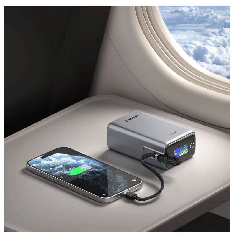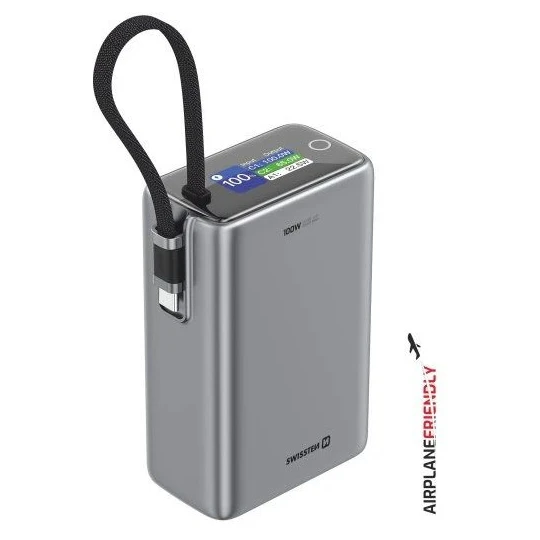 Повербанк Swissten 25 000 mAh (96,25 Wh) — ідеальний супутник для частих мандрівників та щоденного використання. Завдяки ємності, що трохи не досягає ліміту для ручної поклажі (100 Вт·год), її можна брати з собою навіть у літак. Powerbanka може заряджати ноутбук, планшет і смартфон одночасно та забезпечує максимальну потужність до 100 Вт.
