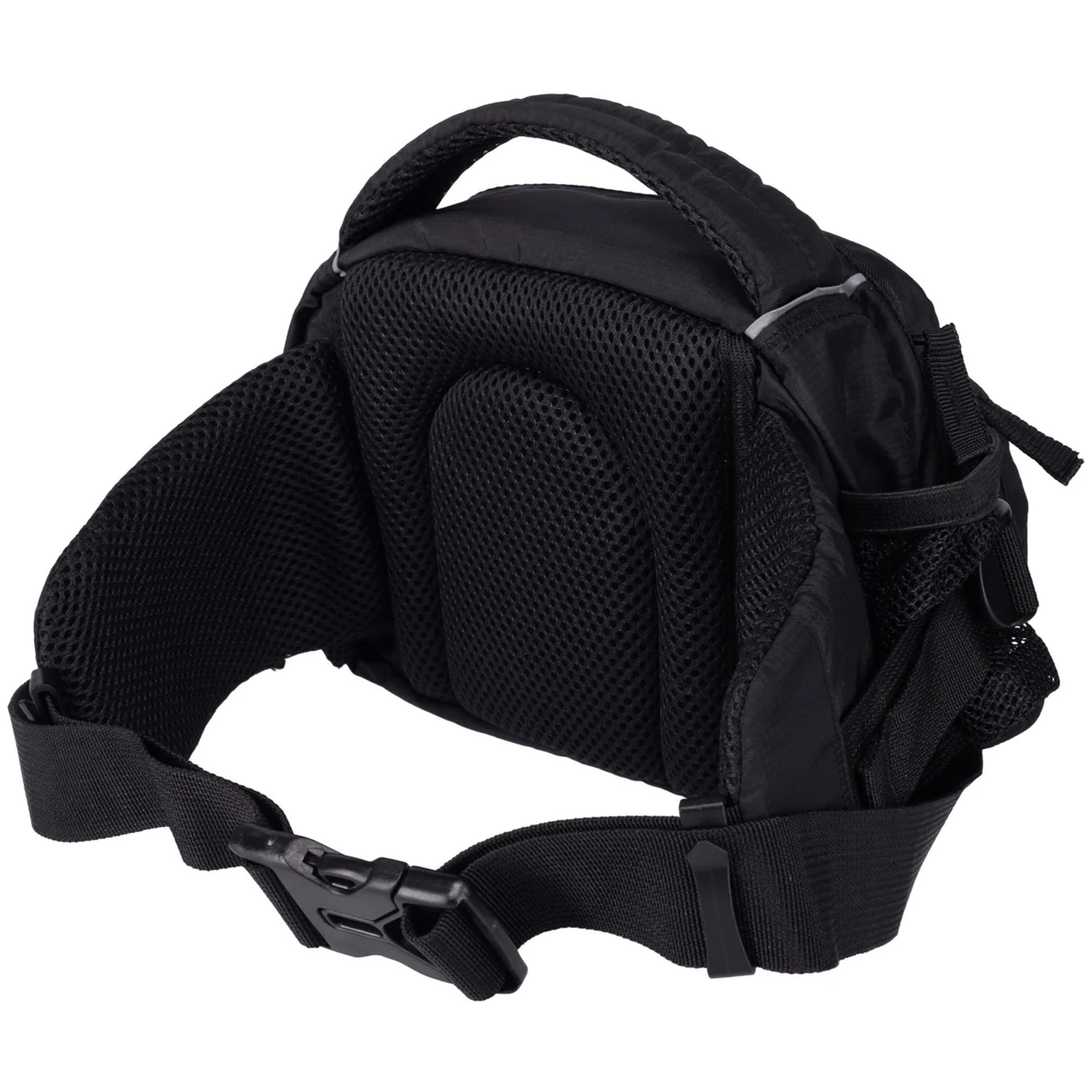 Зручність під час носіння забезпечується м'якою задньою частиною та регульованим поясним ременем, завдяки якому сумка добре тримається на місці навіть під час тривалого руху. На передній кишені розташована практична еластична шнурівка зі стопером, куди можна прикріпити, наприклад, легку куртку. Світловідбиваючі елементи підвищують вашу видимість у сутінках або в темряві, що сприяє безпеці.