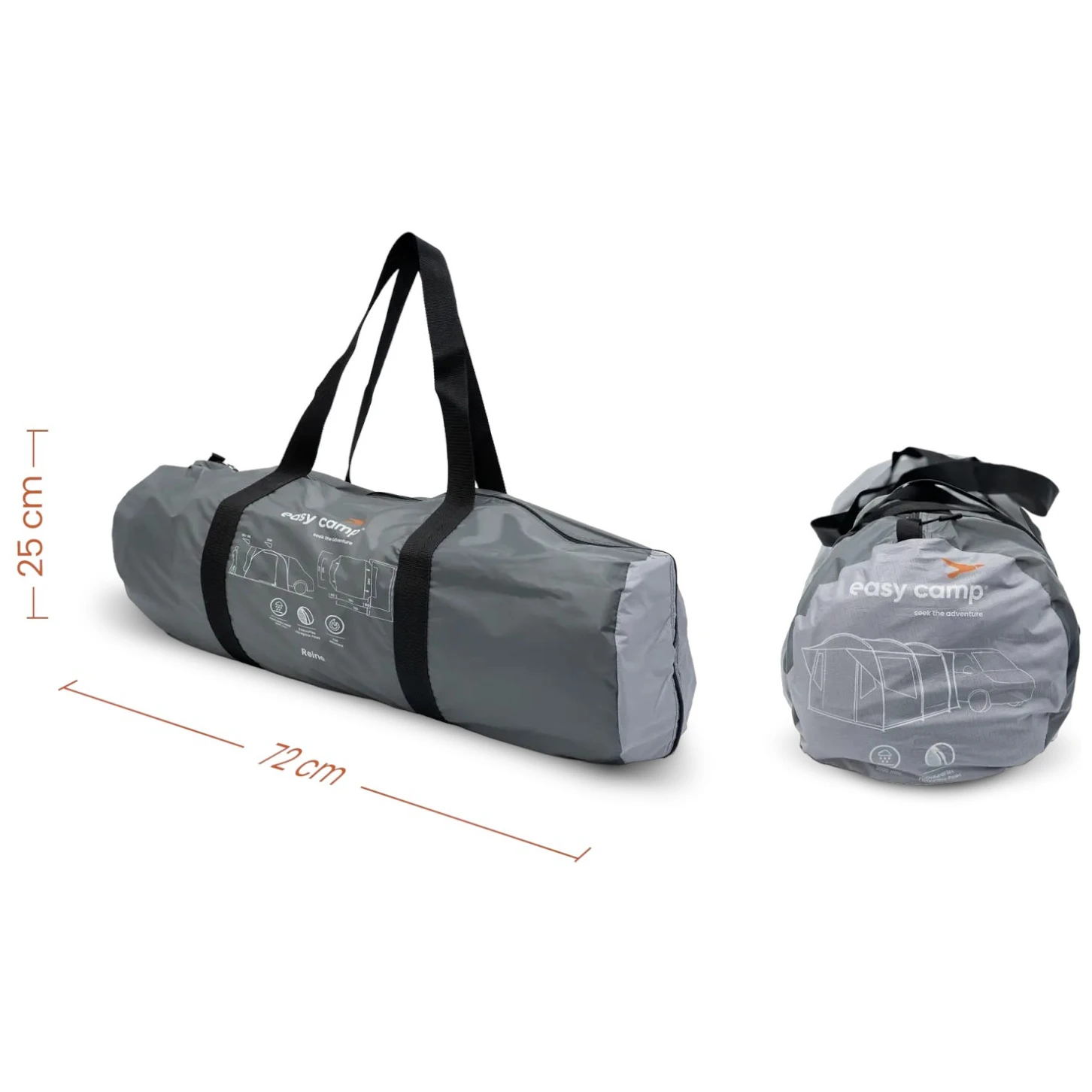 Намет Reine — це просторий тунельний намет, який пропонує комфортний житловий простір для відпочинку, приготування їжі та спільного проведення часу. Завдяки системі drive-away ви легко приєднаєте його до кемпера або MPV та швидко від'єднаєте – намет може стояти окремо, поки ви використовуєте транспортний засіб для коротких поїздок.