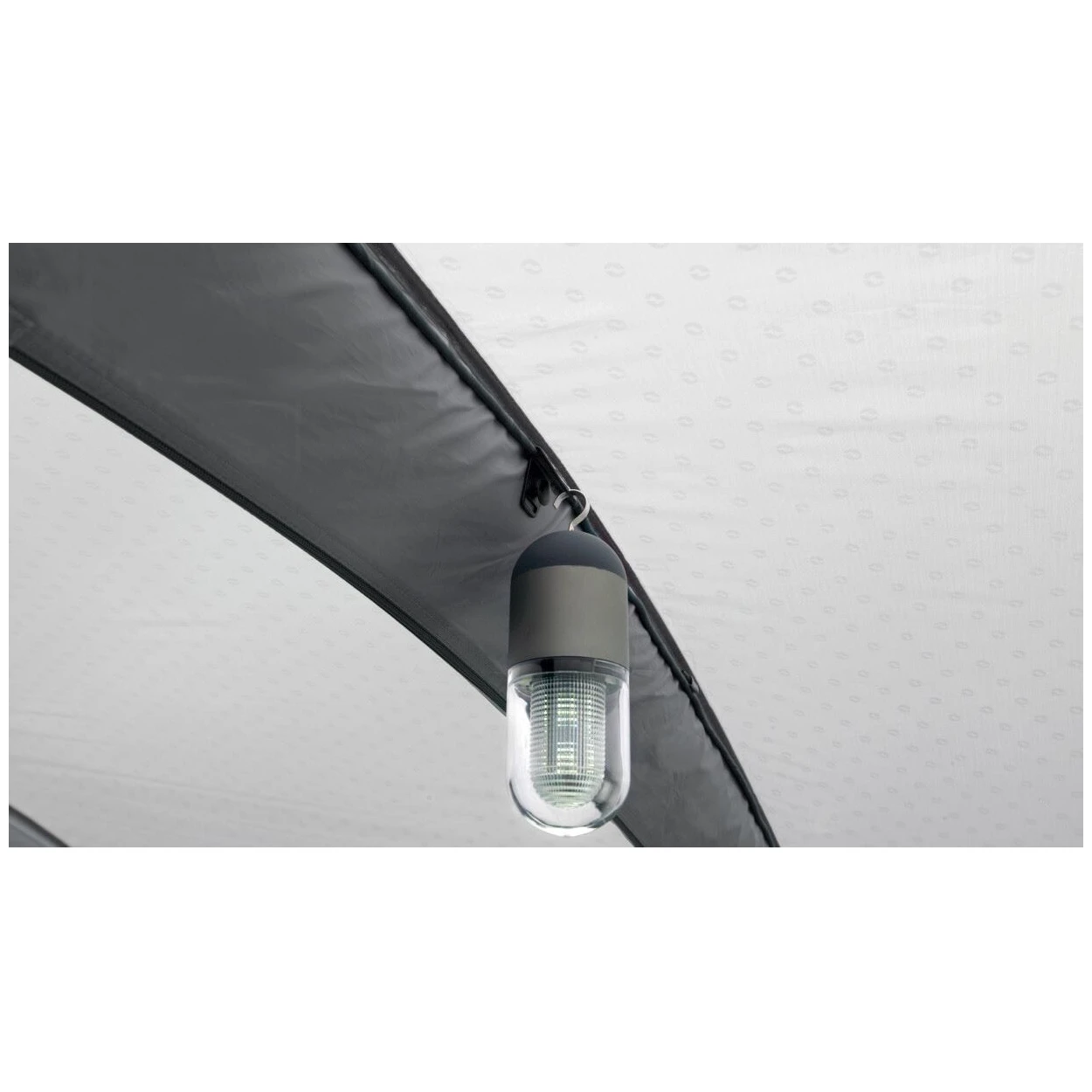 До намету також можна потрапити через два бічні входи, які ведуть до зони доступу до зв'язку. Ця зона з'єднує ваш автомобіль з двором і, завдяки знімному килимку, допомагає підтримувати чистоту навколишнього середовища та усуває протяги. Всередині є закритий вхід для подовжувача, щоб увімкнути лампу або зарядити мобільний телефон. Система Hooktrack дозволяє кріпити легкі предмети, кабелі та лампи на заздалегідь підготовлені "рейки". Намет готовий до встановлення системи нічного освітлення Outwell, яку можна придбати тут.