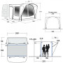 Широкий панорамний вхід з москітною сіткою дозволяє безперешкодно зайти в намет, а відкрити його можна за бажанням завдяки чотирьом блискавкам. Вхід закритий навісом, який запобігає потраплянню води всередину намету. Легкий дах разом з широкими тонованими вікнами забезпечують достатнє освітлення внутрішнього простору, одночасно захищаючи від прямих сонячних променів і ультрафіолету. Якщо вам потрібно більше приватності, просто закріпіть штору на потрібній висоті.
