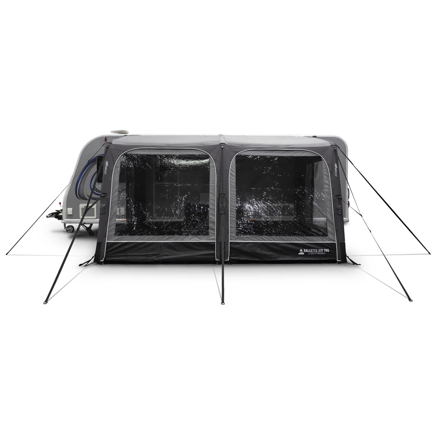 Завдяки глибині 2,5 м, Balletto Pro Air 390 пропонує ідеальний баланс між простором і практичністю, навіть на компактніших ділянках. Маркіза може слугувати як місце для зберігання речей, їдальня або додаткова спальня. До комплекту входить вітрозахисна спідниця, чохли для колісних арок та знімна вставка SkyLiner, яка зменшує конденсацію та покращує тепловий комфорт.