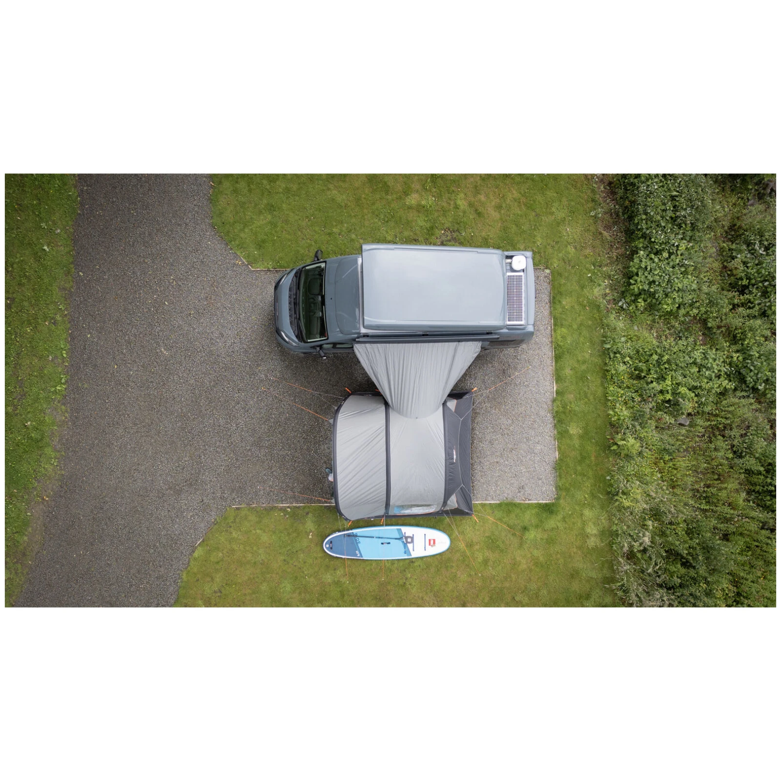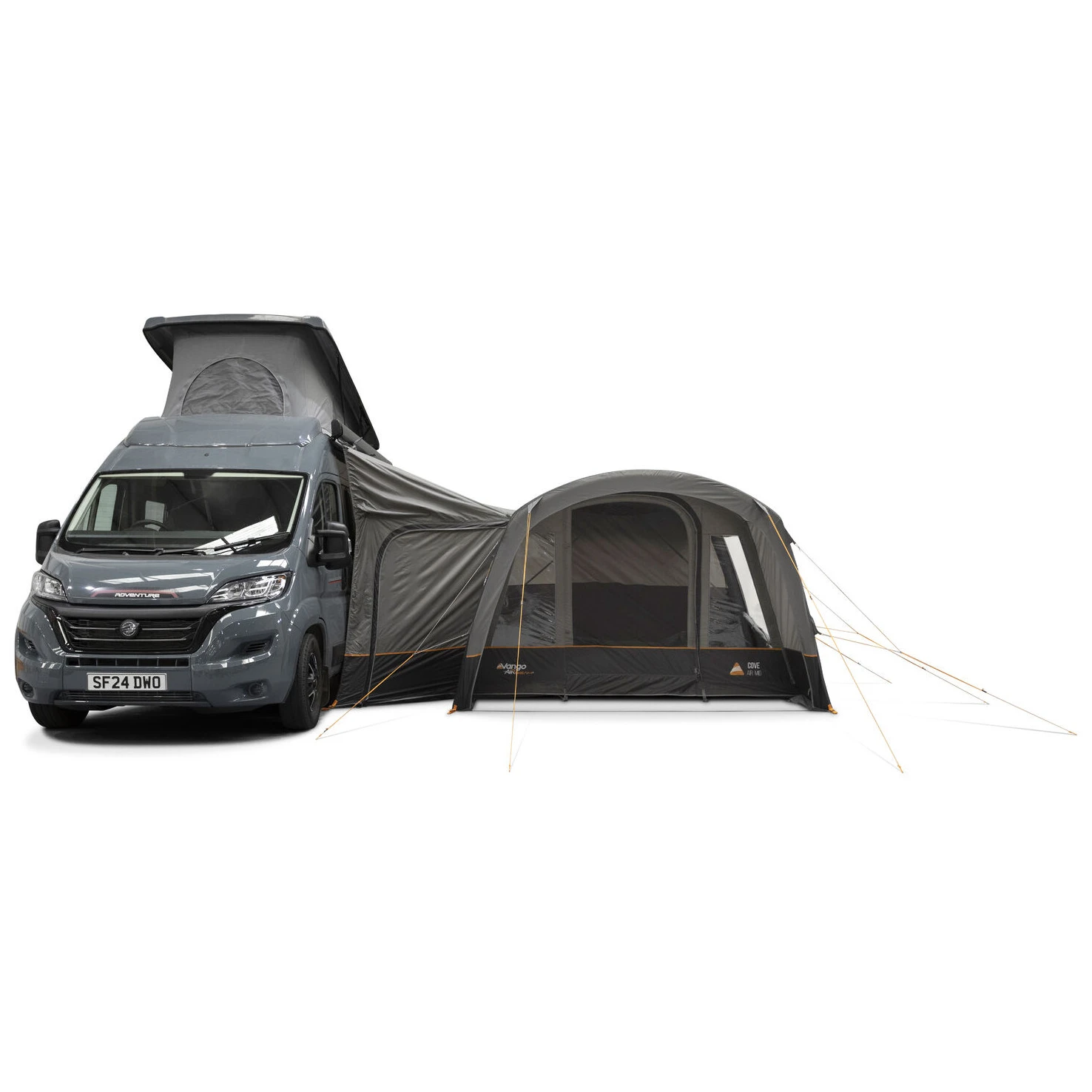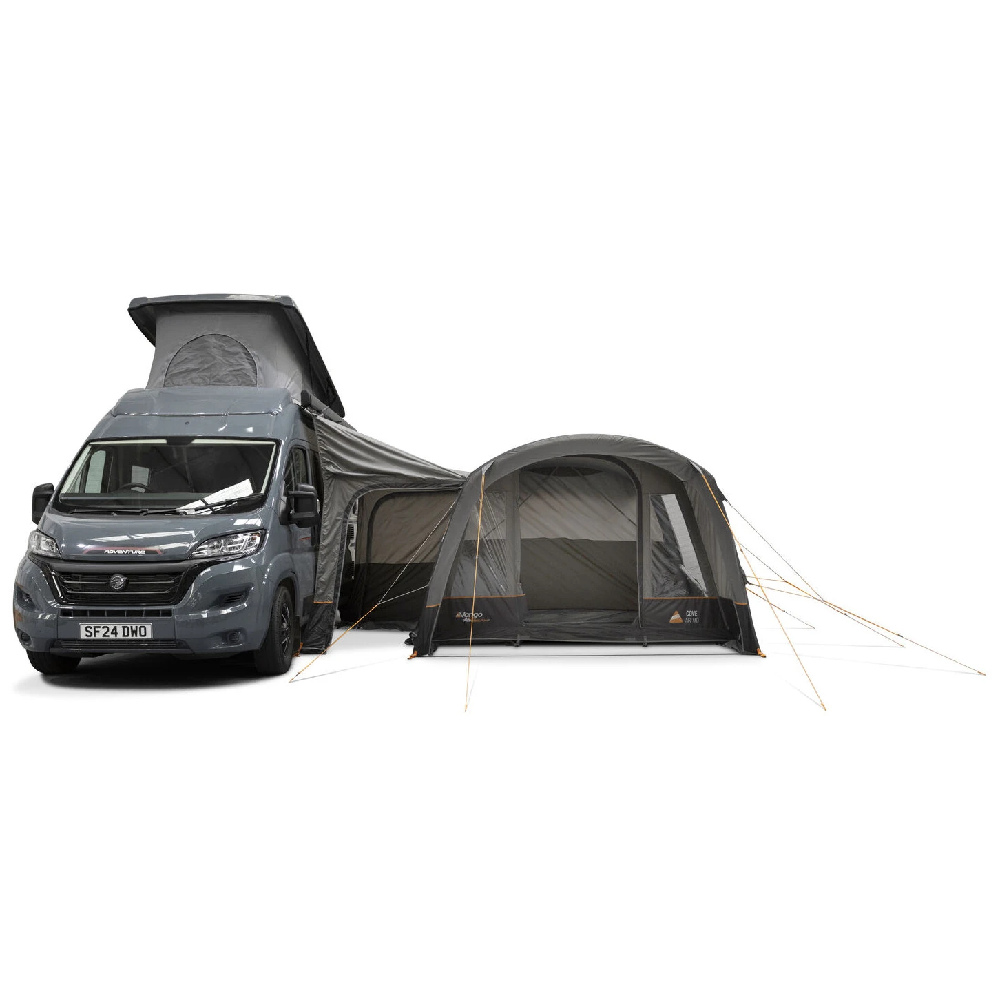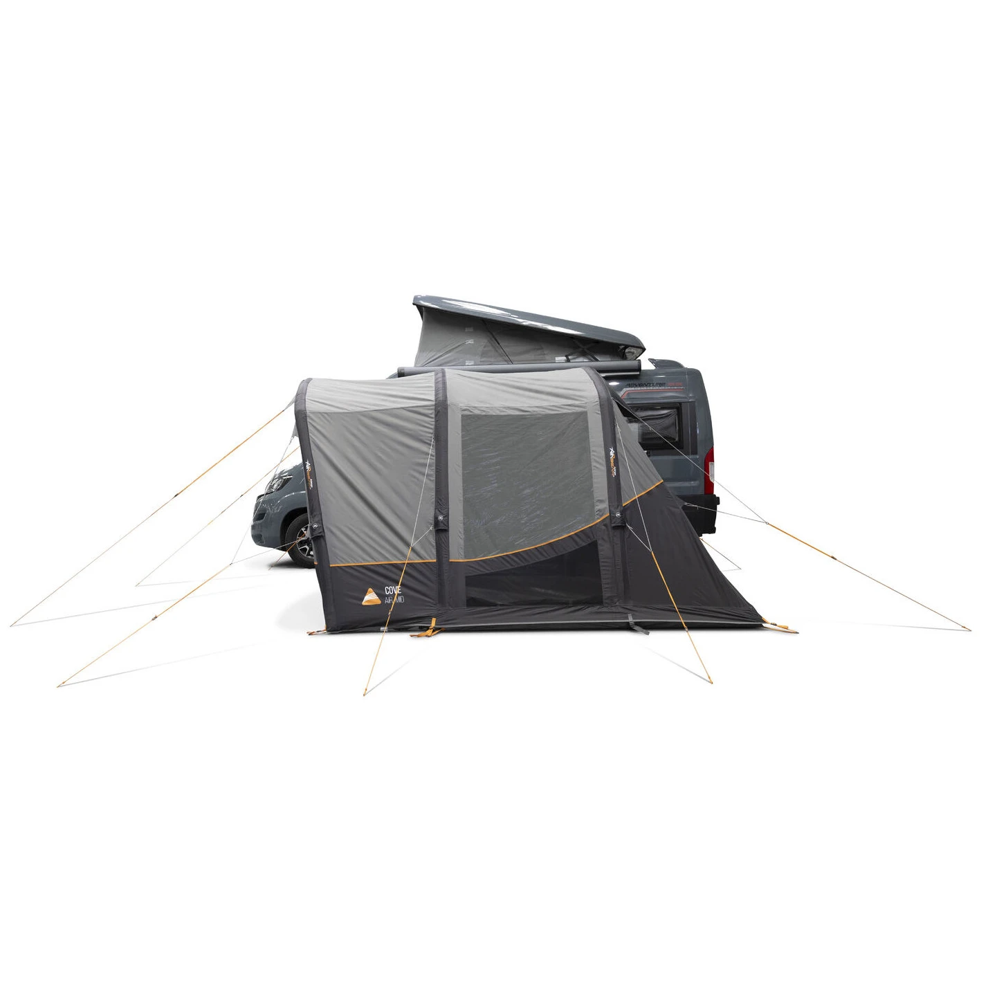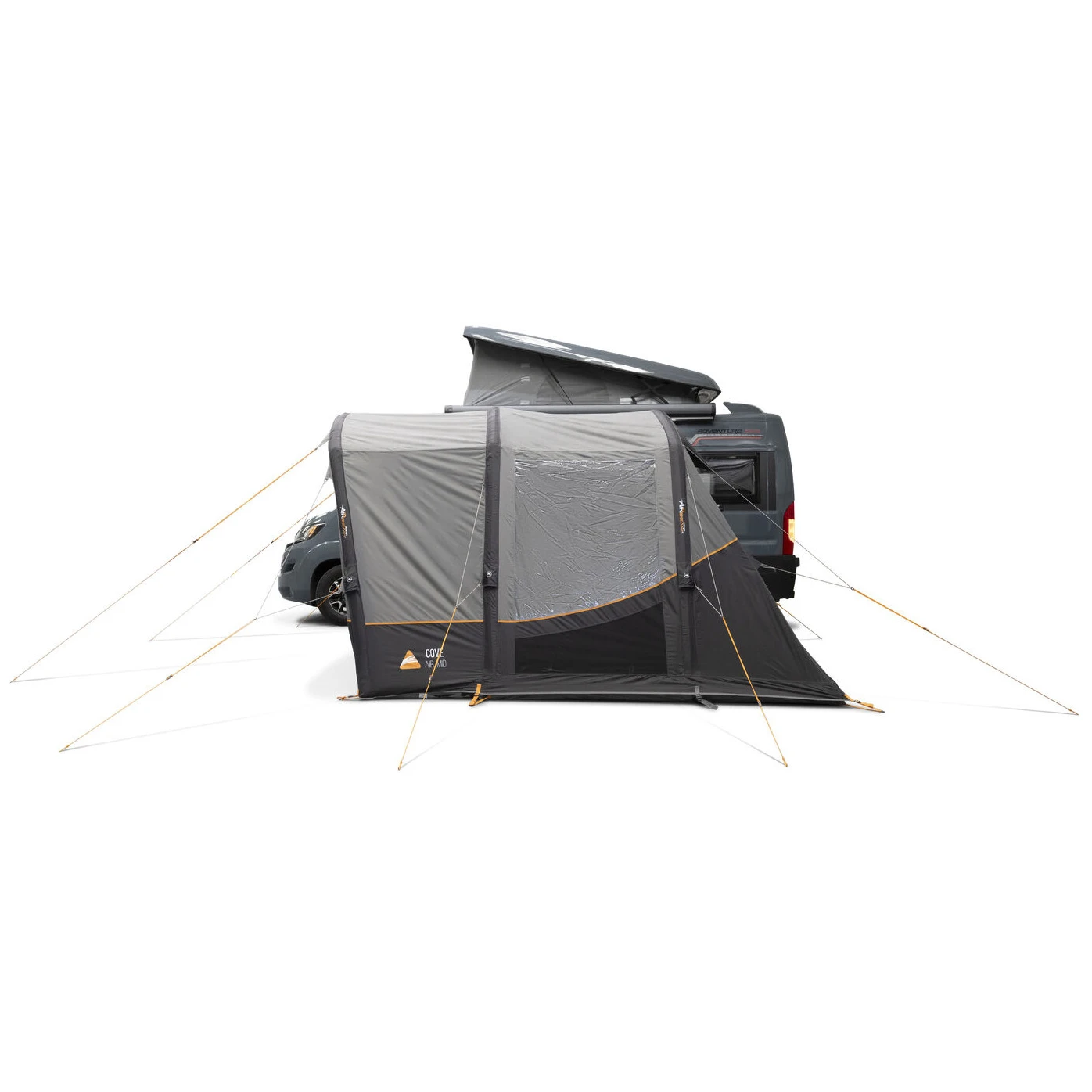 Намет модель Cove III Air Mid від виробника Vango розроблений як практичне та універсальне розширення житлового простору для фургона. Завдяки ідеальному розміру він забезпечує достатньо місця для зберігання речей, спільного відпочинку або створення додаткового спального місця. Великою перевагою є попередньо прикріплений передній навіс, який створює захищений зовнішній простір для відпочинку навіть за поганої погоди.