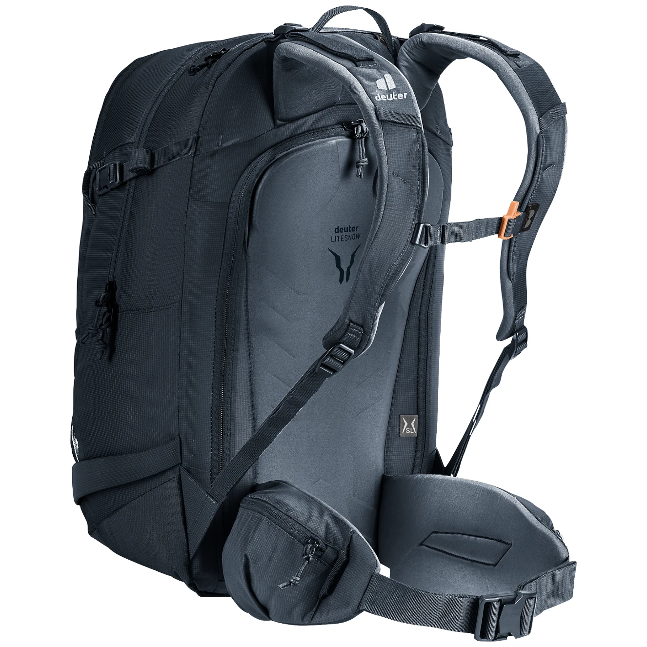Система спини LiteSnow розроблена таким чином, щоб мінімізувати налипання снігу, при цьому гарантує комфортний контакт з тілом та оптимальний розподіл навантаження.Рюкзак дозволяє кріпити лижі діагонально або в A-подібній рамці, так само як сноуборд чи снігоступи. Окрема кишеня для лавинного спорядження забезпечує швидкий доступ у разі потреби.
