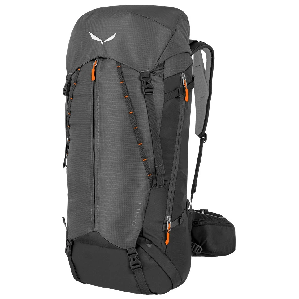 Рюкзак Trek Mate 55+5 від бренду Salewa має легко регульовану несучу систему Dry Back Custom та регульовану довжину спинки. Звісно, є анатомічно сформовані, м'які плечові лямки, поперекова опора та поясний ремінь для індивідуального припасування. Ремінці для підйому вантажу додатково забезпечують оптимальне прилягання спини на великі відстані. Легка конструкція допомагає підтримувати низьку вагу рюкзака. Система Dry Back з м'якою задньою панеллю з EVA та 3D вентиляційними каналами сприяє гарному потоку повітря та повітропроникності в спині в усі пори року.