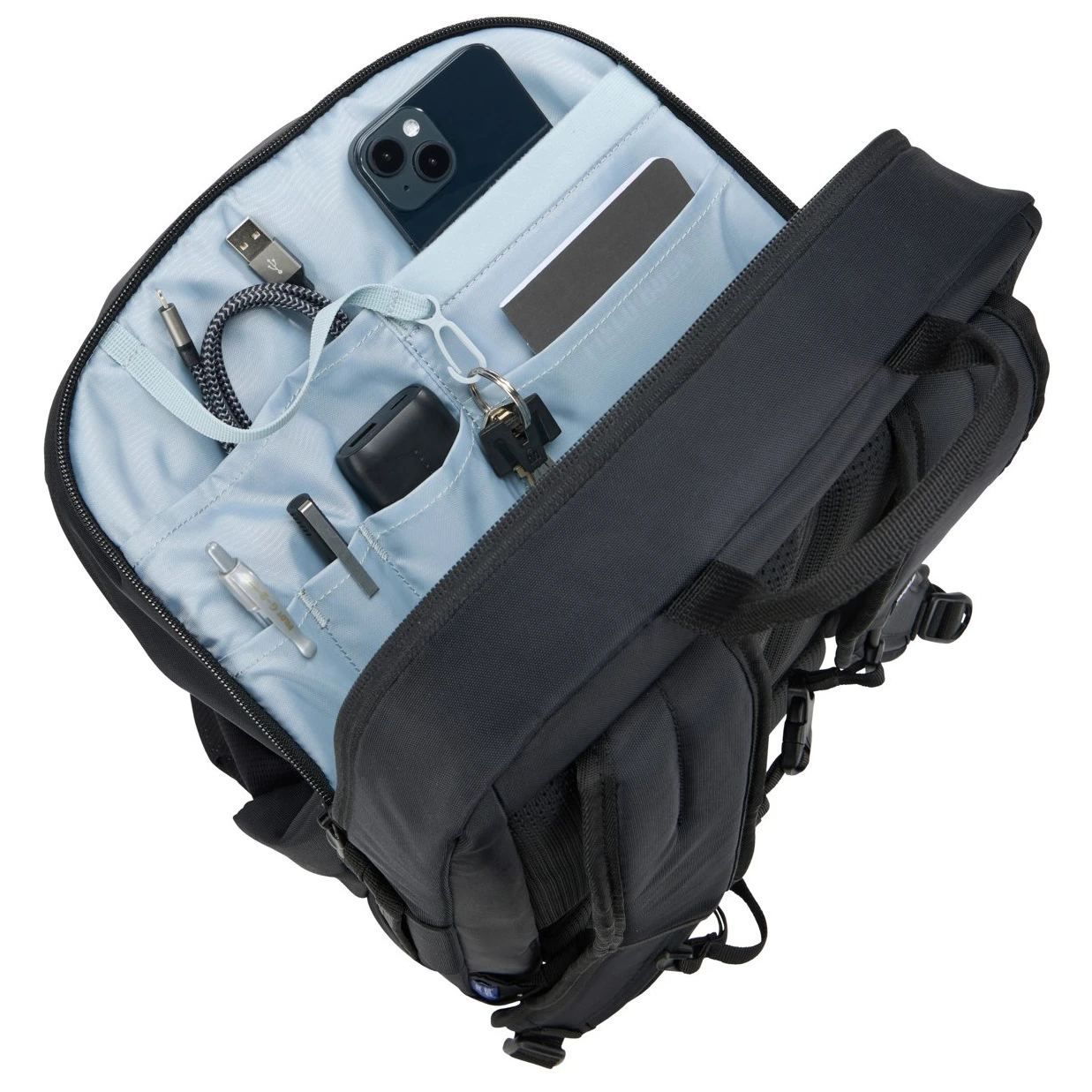 Універсальний рюкзак EnRoute 30L від бренду Thule ви зможете використовувати як під час активного відпочинку, так і для роботи. Свій ноутбук і робочі матеріали при цьому ви можете зберігати окремо від особистих речей. Ви можете зберігати електроніку та робочі документи в окремих відсіках від особистих речей. Рюкзак повністю розстібається, тому речі можна складати з обох боків. Він має відділення для об'ємних речей з сітчастою вставкою, яка застібається на блискавку і допомагає підтримувати порядок.
