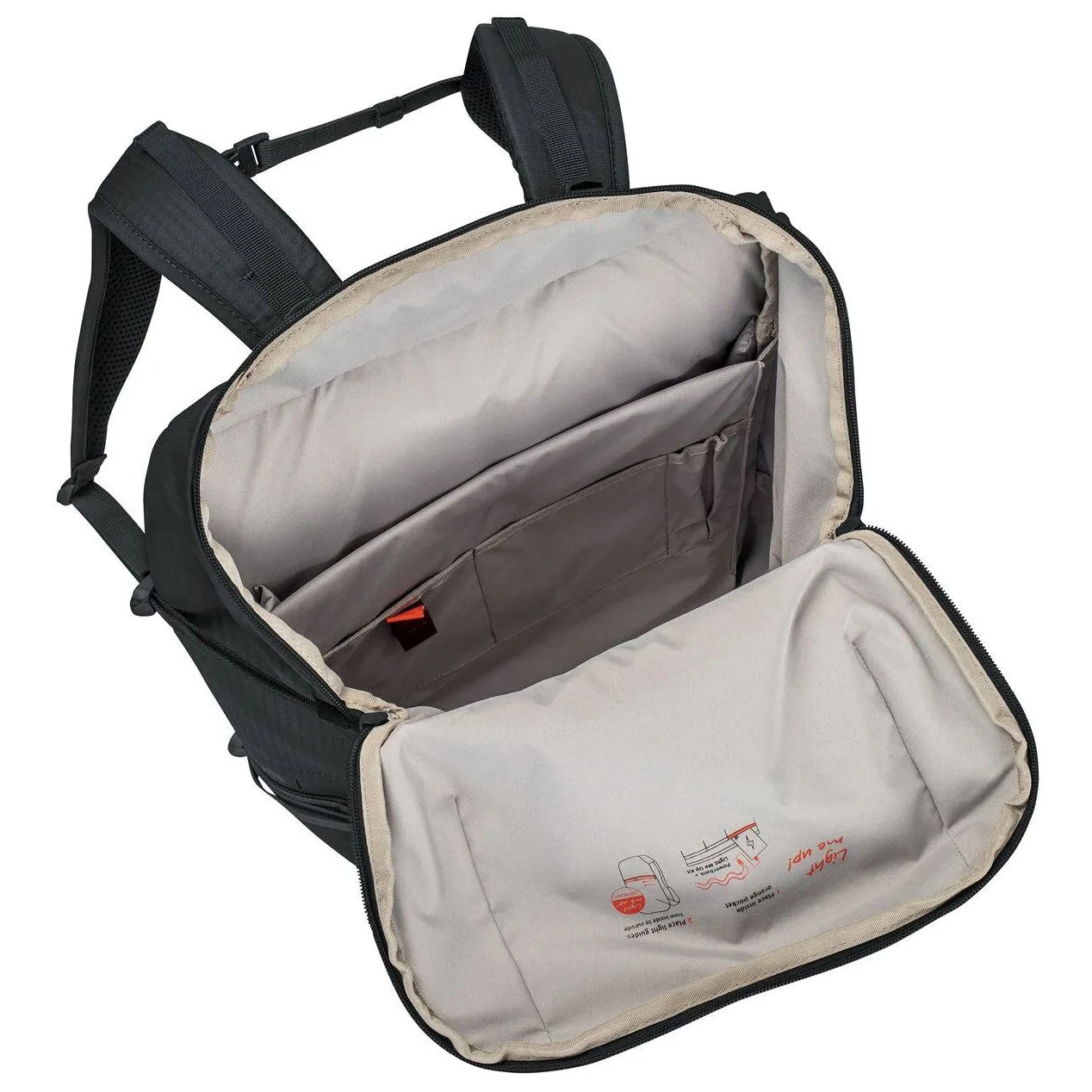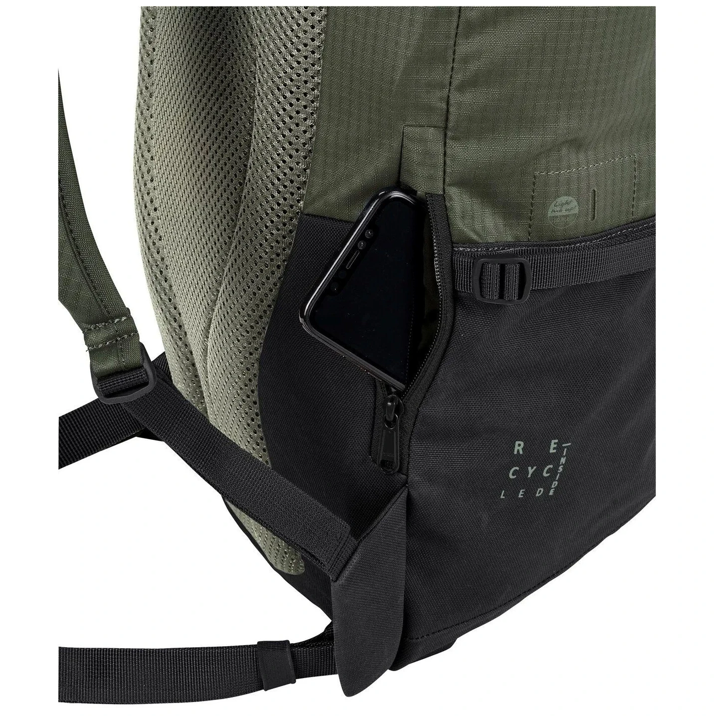 Ергономічні плечові ремені ErgoShape, поясний ремінь і вентильована спинка Vent-Comfort забезпечують комфорт навіть при повному завантаженні. Матеріал Eco Finish відштовхує воду та бруд без PFC і виготовлений з переробленого PET і поліаміду, що зменшує екологічний слід.