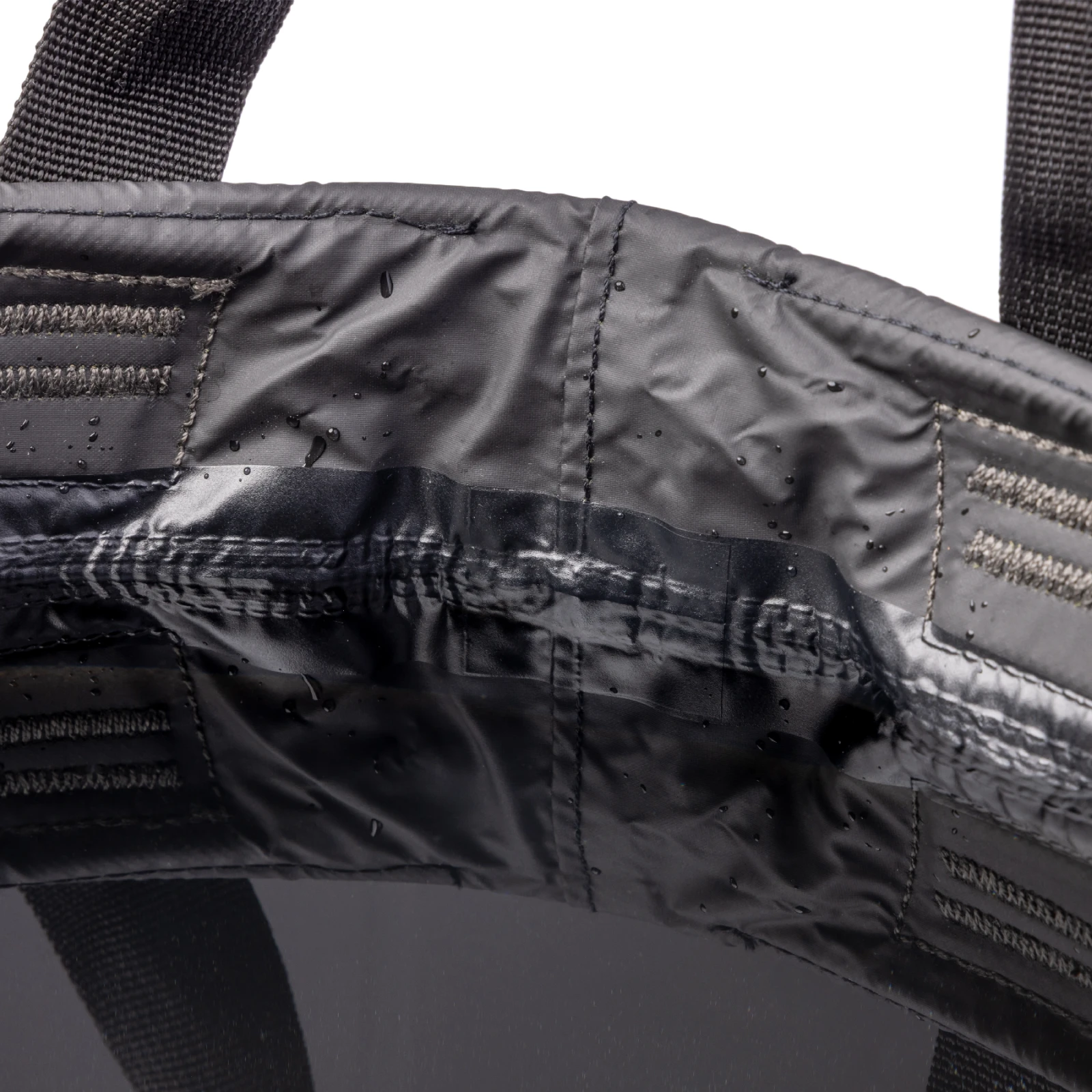 Матеріал виготовлено з водовідштовхувального переробленого нейлону 70D, який сертифікований за стандартами RCS та bluesign®, без використання ПВХ та PFAS хімікатів. Внутрішнє чорне покриття прискорює висихання та підвищує стійкість при щоденному використанні.
