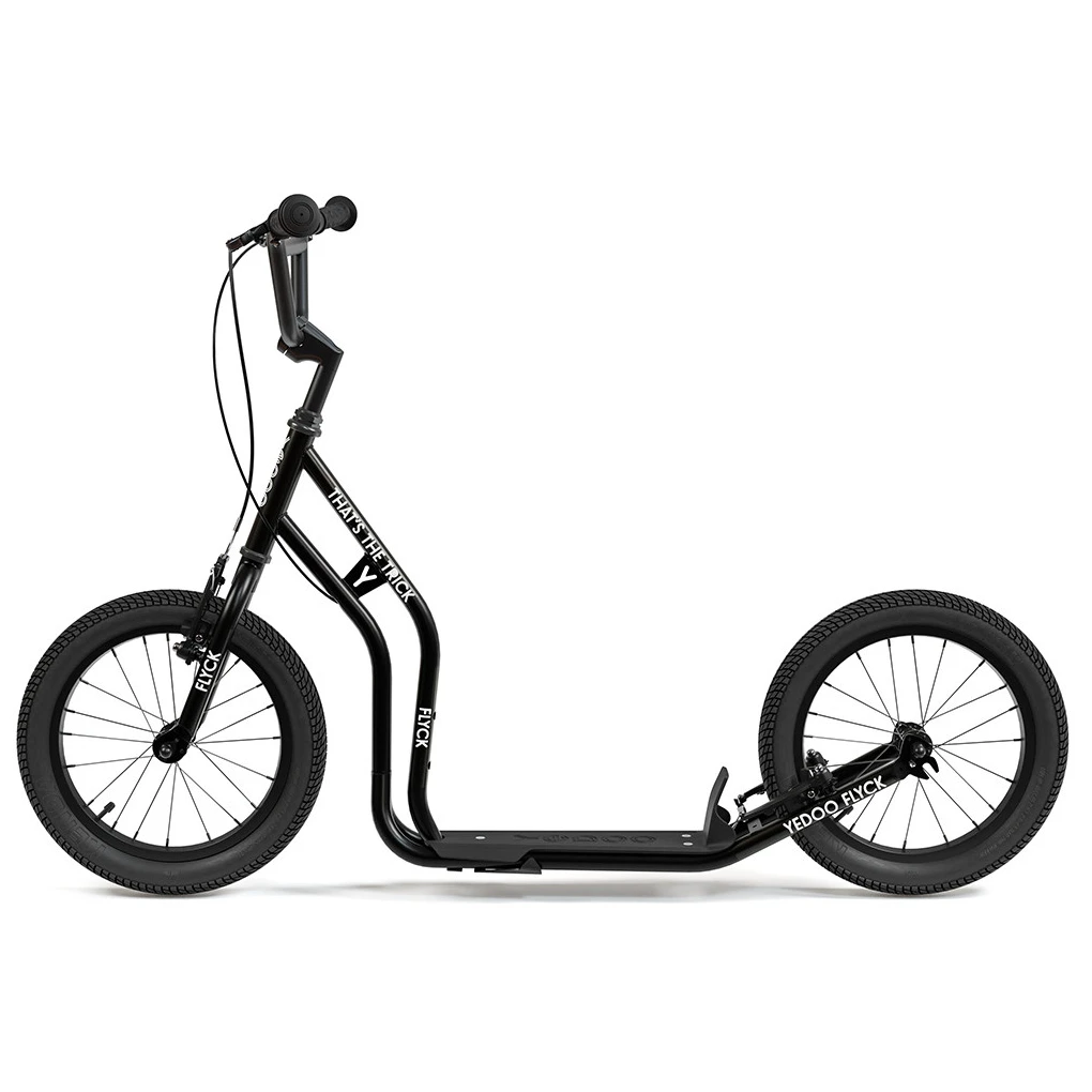 Flyck Y40 містить цілу низку практичних фішок – протиковзку підніжку для безпечної їзди за вологої погоди, відкидну підставку для легкого паркування, задній гальмівний трос, проведений рамою для більшої безпеки, і регульоване кермо, яке завдяки широкому діапазону дозволяє адаптувати висоту до дитини навіть під час росту протягом кількох років.