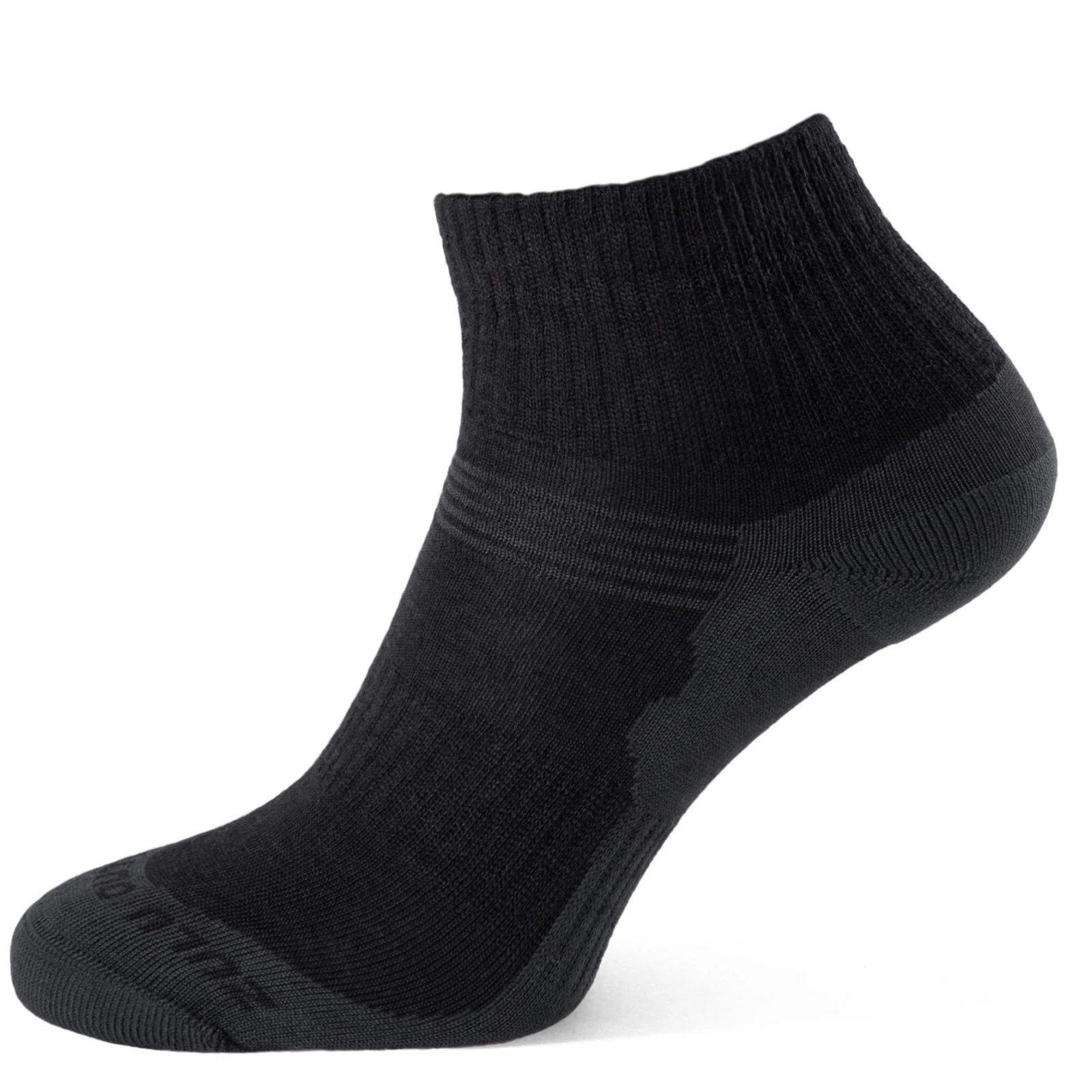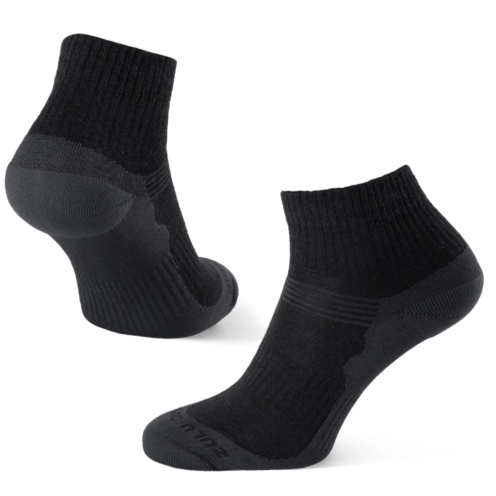 Мериносова вовна — це найніжніший тип вовни, що використовується у виробництві шкарпеток. Вона має чудові терморегулюючі властивості та приємна до тіла. Синтетичні волокна ефективно відводять вологу, тому в шкарпетках комфортно та сухо навіть під час активного руху. Технологія плетених рельєфних зон не лише додає дизайну стилю, а й сприяє правильній вентиляції та допомагає зберігати фіксацію шкарпетки на нозі.