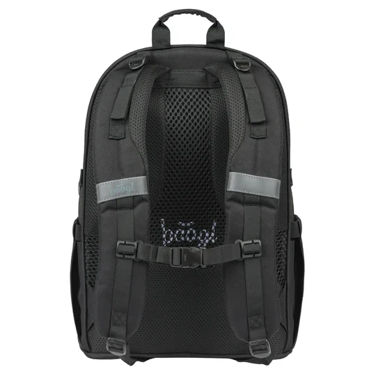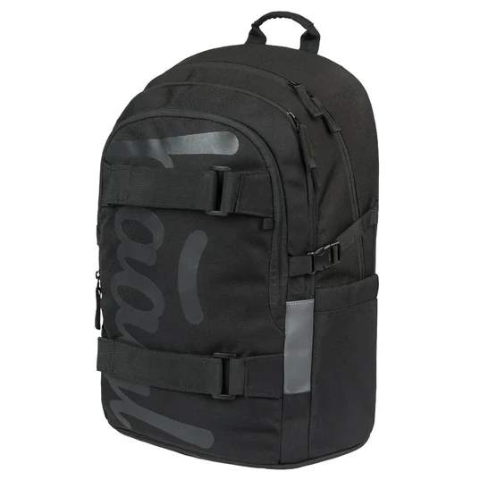Рюкзак виготовлений з міцного та водостійкого матеріалу. Має три окремі камери на блискавці. Всередині є практичний органайзер і кишеня для 15" ноутбука або планшета. Дві бічні сітчасті кишені ідеально підходять для пляшки з водою. З передньої сторони розташовані ремені для кріплення скейтборду. Рефлективні елементи, розміщені з усіх боків, підвищують видимість дитини за поганих умов освітлення.