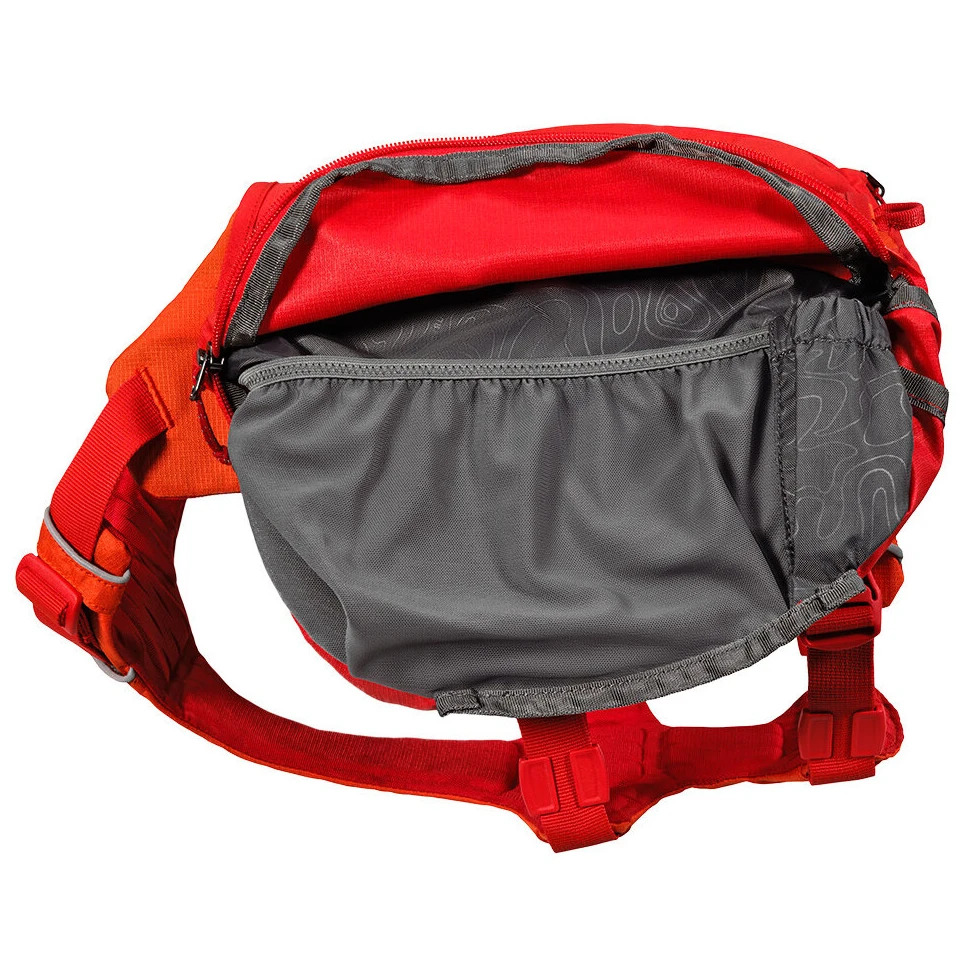 Ruffwear Palisades Pack™ — це об'ємні собачі сумки для багатоденних походів з можливістю відстібати кишені від ременя для максимальної гнучкості.