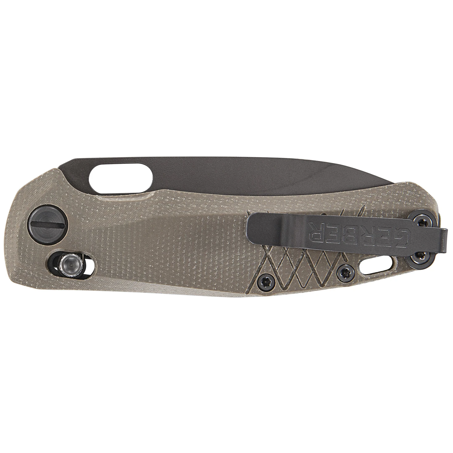 Кишеньковий ніж Gerber Scout має гладке лезо, що закривається, яке фіксується у відкритому стані за допомогою кнопки Pivot Lock. Ніж легко відкривається і закривається однією рукою завдяки двосторонньому кнопковому замку і практичному отвору в лезі. Лезо Drop Point виготовлене з міцної сталі 440A і має темне PVD-покриття для підвищення стійкості до корозії.