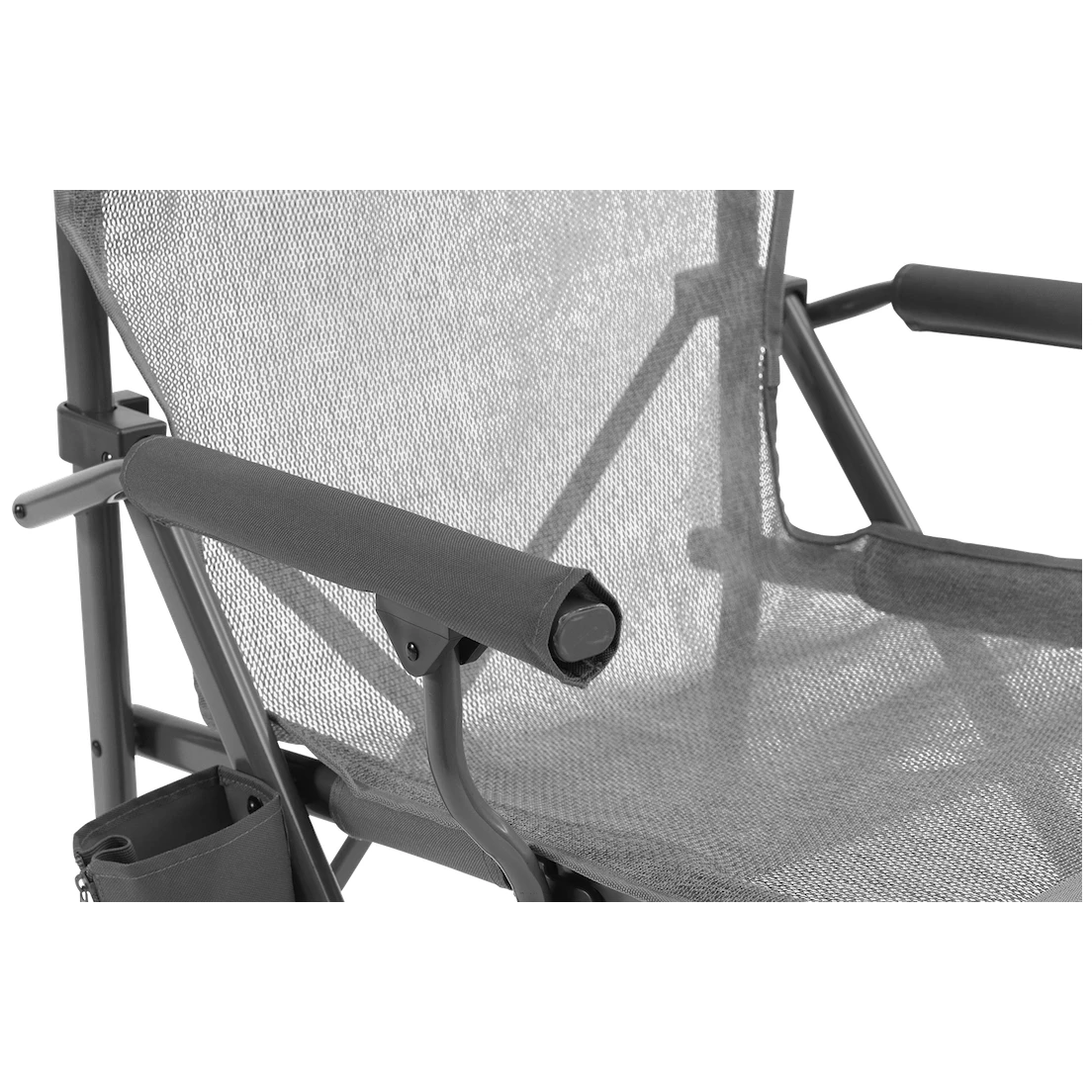 Повітропроникний поліестеровий чохол з тканини Duraflex доповнено якісною легкою сталевою конструкцією. Це гарантія довговічності. На нижній стороні є широкі ніжки, які ідеально підходять для м'якого ґрунту. Крісло має зручні підлокітники, додаткову ширину та високу спинку для оптимальної підтримки шиї. Збоку є підсклянник.