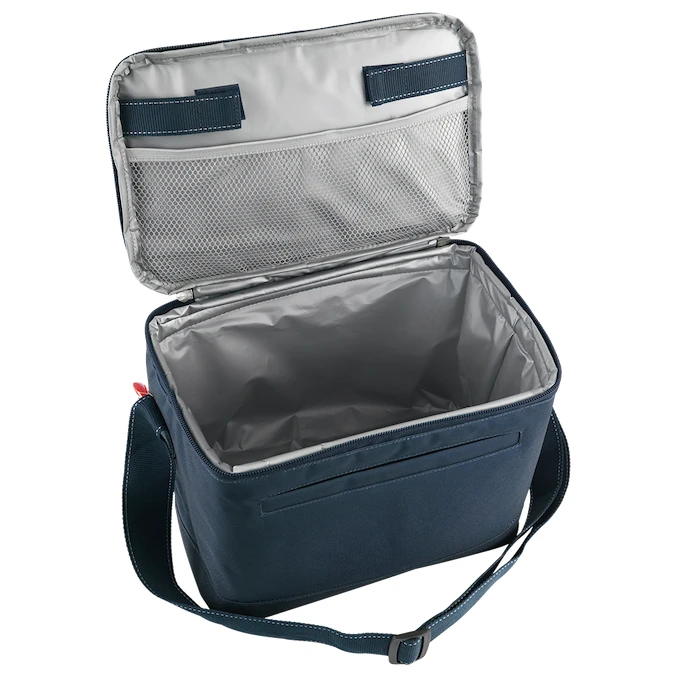 Виготовлений з високоякісного поліестерового матеріалу, внутрішній матеріал - підкладка PEVA зі звареними швами, яка є водонепроникною і легко чиститься. Велика верхня кришка відкривається з трьох боків, забезпечуючи ідеальний доступ до вмісту. З об’ємом 10 літрів у головному відділенні та додатковим простором у передній кишені, ви можете підготувати пікнік для своєї родини чи друзів. Всередині кришки є сітчаста кишеня для льоду. Має регульований ремінець, який дозволяє носити сумку в руці та на плечі. Коли вона вам не потрібна, сумку можна скласти в компактний пакунок завдяки компресійним ременям.