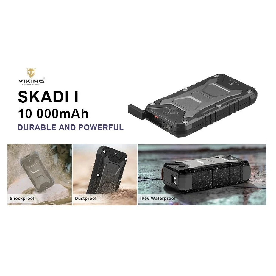 Outdoor-павербанк Skadi I від бренду Viking Technology – ідеальний партнер для всіх любителів пригод, мандрівників і любителів природи. Завдяки ємності 10 000 mAh (37 Wh) і підтримці швидкої зарядки до 22,5 Вт надійно зарядить ваш телефон, GPS або налобний ліхтарик, навіть якщо ви далеко від цивілізації.