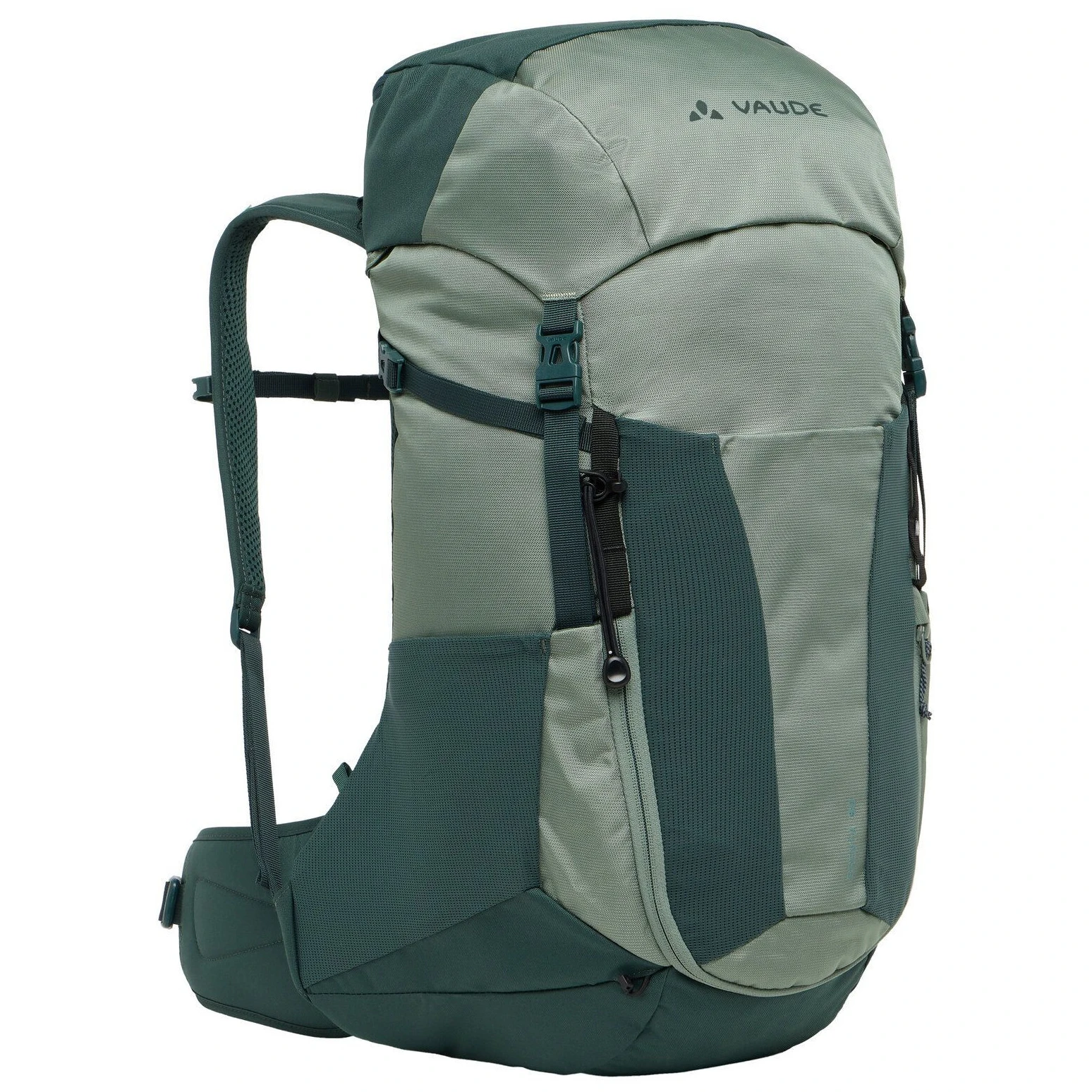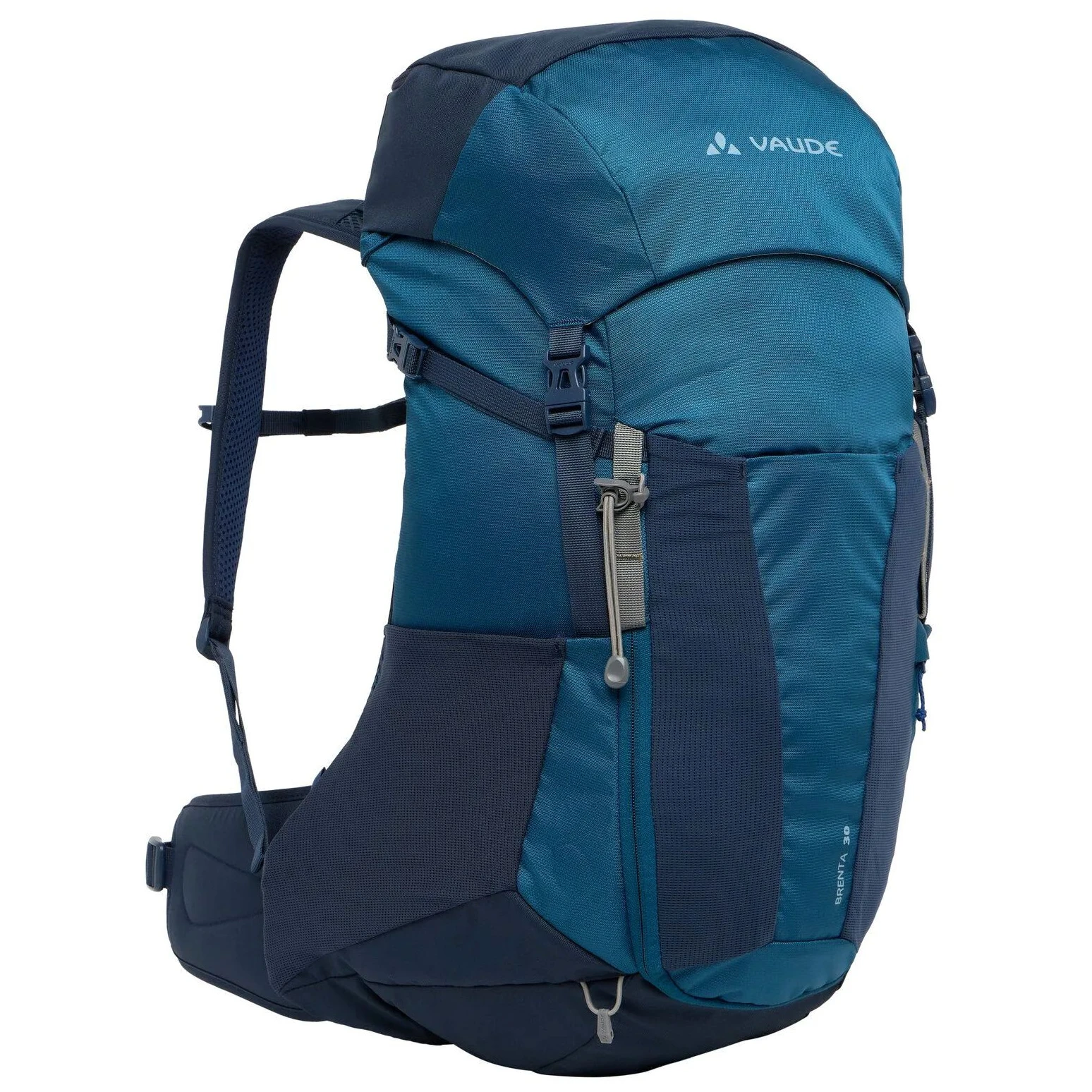Туристичний рюкзак Brenta 30 Vaude ідеально підходить для складних одноденних походів об'ємом 30 літрів, регульований по довжині спини та з ергономічними плечовими лямками ErgoShape. Вентильована спинка Aeroflex 3D 2.0 забезпечує оптимальний потік повітря та комфорт, а рама з пружинного дроту стабілізує навантаження. Практичні функції включають передній доступ до основного відділення, бічні еластичні кишені, кишеню в кришці, кріплення для трекінгових палиць, нагрудний ремінь з кріпленням для гідратаційної трубки та інтегровану знімну дощовик.