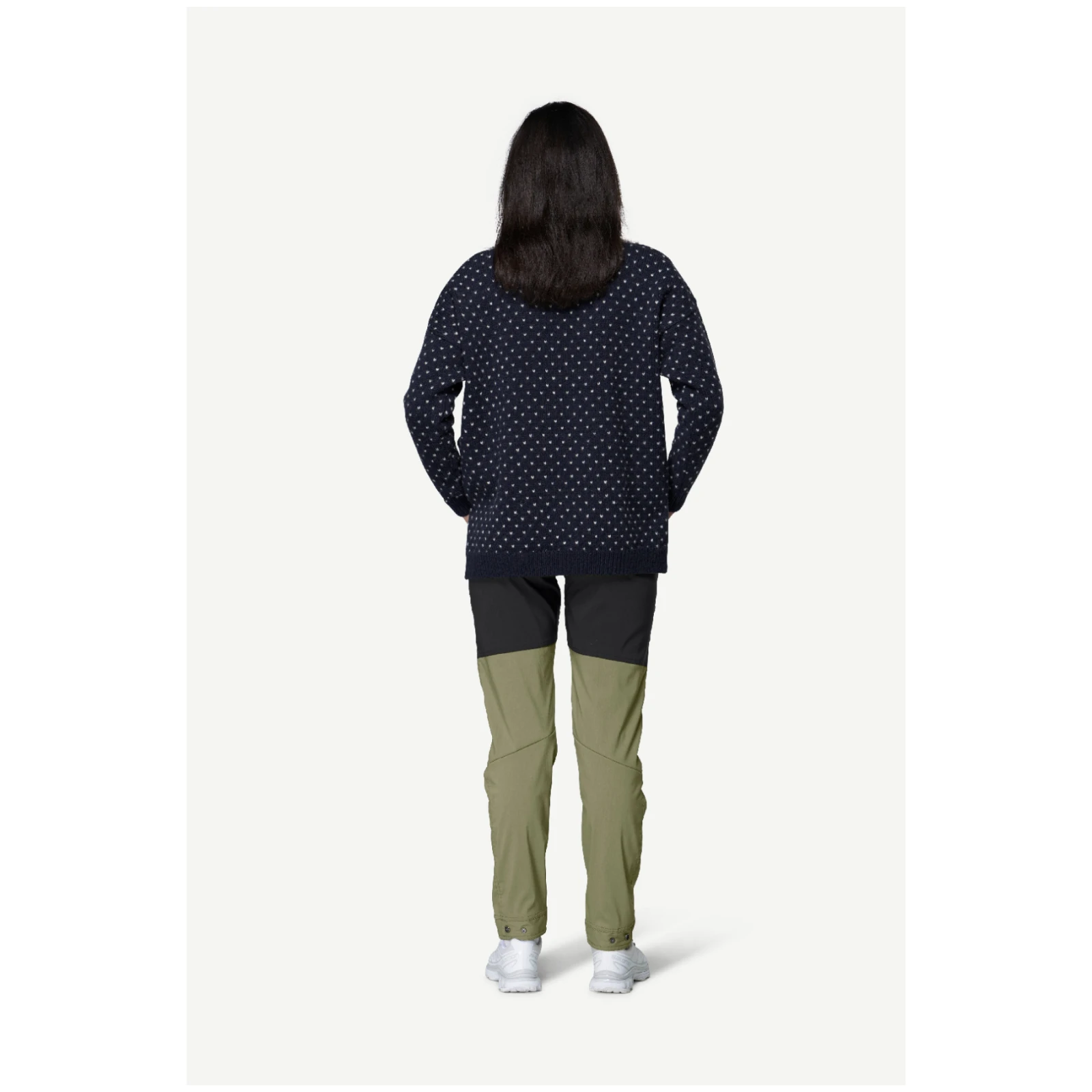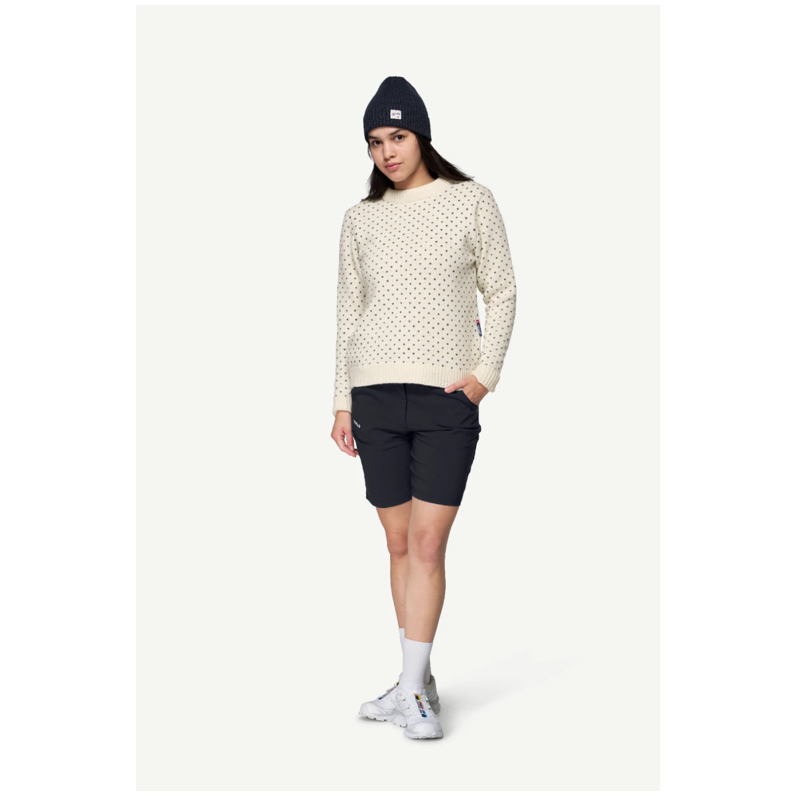 Мінімалістичні норвезькі візерунки надають йому позачасового вигляду, а класичний прямий трикотаж і рубчик на рукавах і нижньому краї забезпечують зручне носіння. Вовна природно ізолює, регулює температуру та гріє навіть у вологому стані, тому вас утримує в сухості та комфорті за будь-якої погоди.