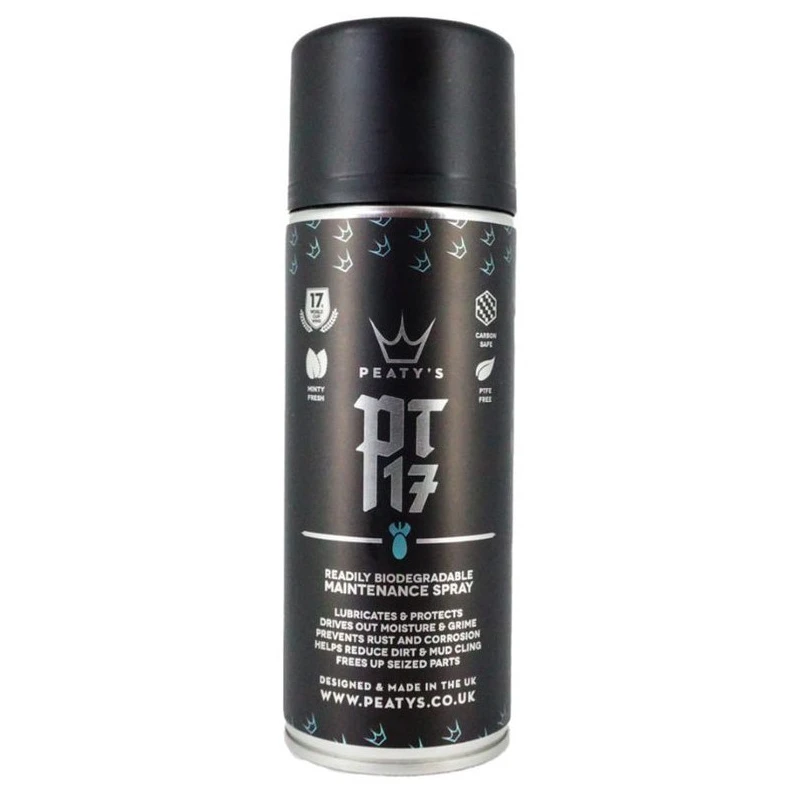 Peaty´s PT 17 - це спрей для технічного обслуговування, який підходить для базового рутинного обслуговування вашого велосипеда без вмісту тефлону, що робить його екологічно безпечним.