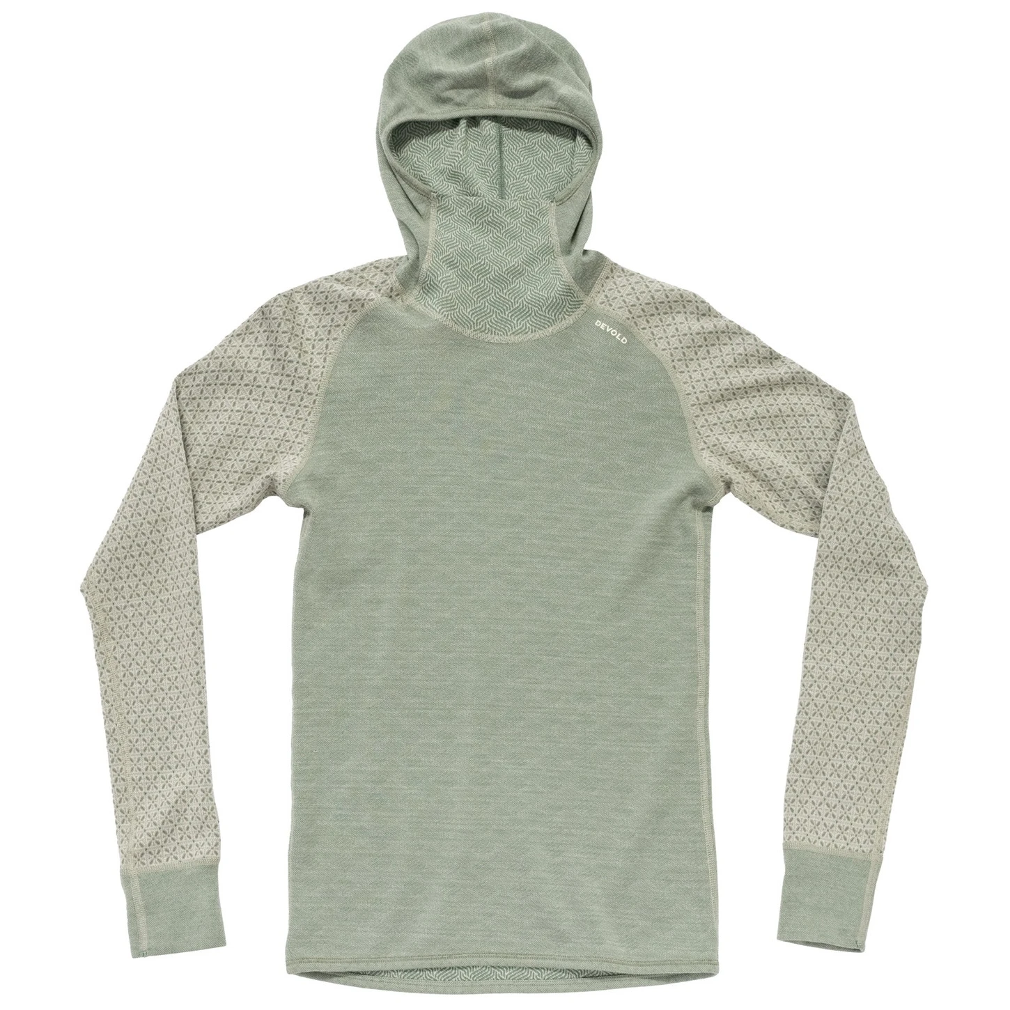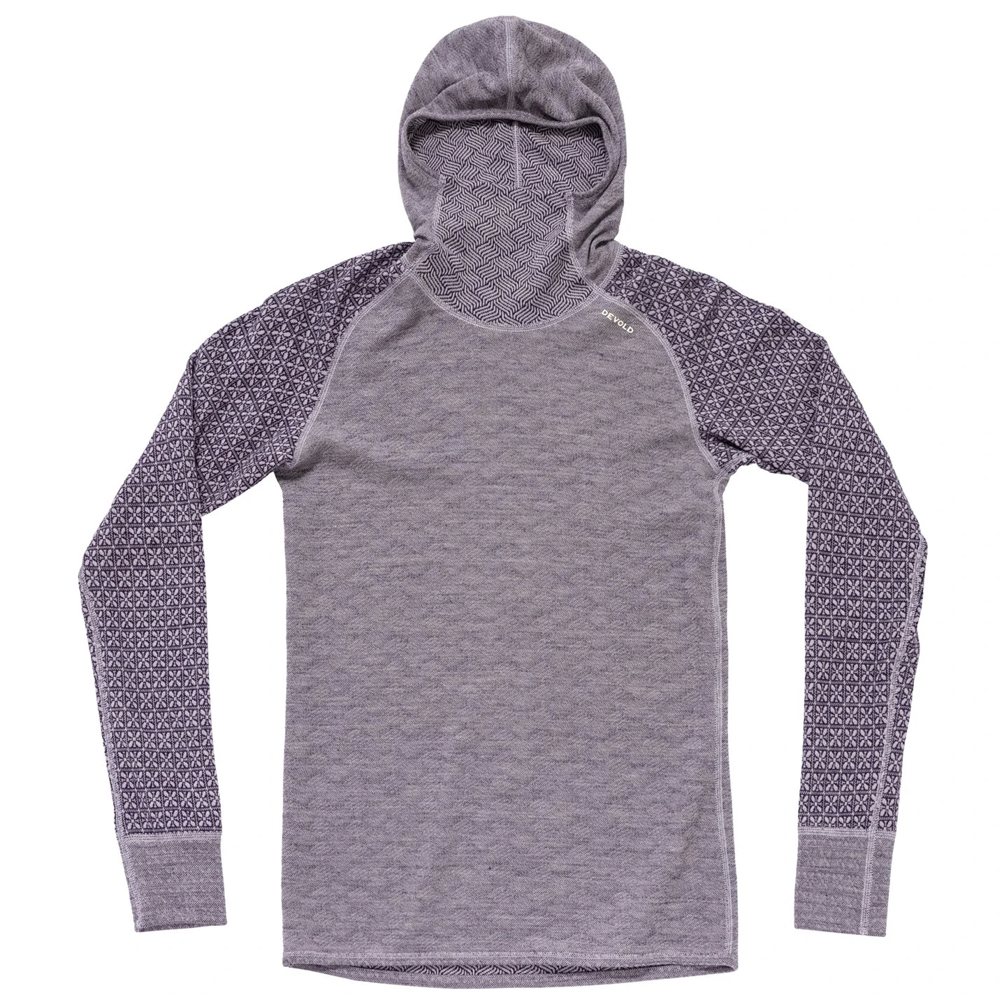 Вирушайте куди завгодно з впевненістю, що вам буде тепло. Devold Kvitegga – один з найтепліших базових шарів від Devold, розроблений для занять з низькою інтенсивністю, коли ключовою є теплоізоляція. Ця модель з капюшоном і високим коміром захищає шию, спину та голову від холоду, а рукави реглан і подовжена задня частина забезпечують комфорт і свободу рухів. Унікальність полягає в двосторонньому виконанні – ви можете вибрати між ніжним геометричним і виразним графічним візерунком відповідно до настрою чи стилю.
