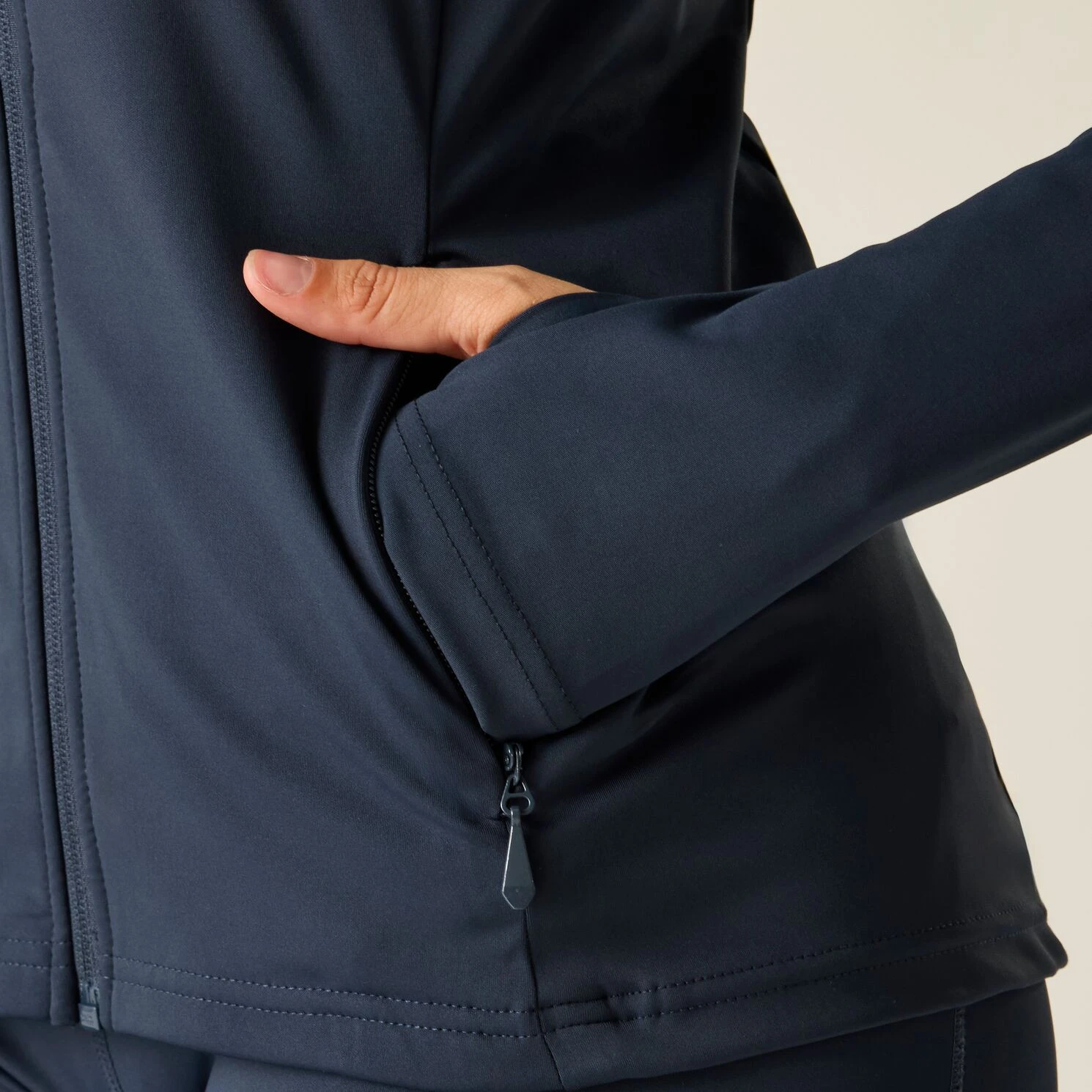 Практичні деталі, такі як блискавка по всій довжині, петлі для великих пальців та дві кишені на блискавці, підвищують функціональність та комфорт. Вертикально формовані шви додатково підкреслюють фігуру та сприяють спокусливому та добре прилягаючому крою, завдяки чому ви почуватиметеся впевнено під час будь-якої активності.
