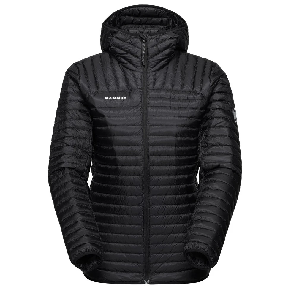 Жіноча пухова куртка Broad Peak Light IN Hooded Jacket Women від бренду Mammut – чудовий вибір, якщо ви плануєте активність у горах. Вона дуже легка, і ви оціните можливість скласти куртку в невеликий компактний пакет за допомогою однієї з бічних кишень. Внутрішній утеплювач - гідрофобний гусячий пух, який надійно ізолює навіть у вологих умовах. Зовнішній матеріал складається з переробленого поліаміду. Капюшон з еластичним краєм ідеально сидить і не обмежує рухів.
