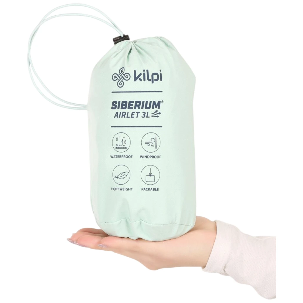 Головною перевагою куртки є мембранний матеріал SIBERIUM з проклеєними швами, надзвичайно високою повітропроникністю та водяним стовпом 20 000 мм/м²/24 год. Надлегкий матеріал ідеально пакується в сумку, яка йде в комплекті з курткою. Вага куртки становить всього 200 г (розмір 36). Дві кишені на водонепроникних блискавках також слугують вентиля ційними отворами для максимальної вентиляції.