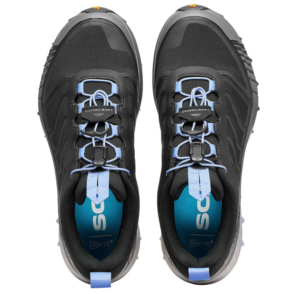 Верх взуття виготовлений з високодихаючої та міцної сітки. Вона доповнена інтегрованою системою SCARPA EXO, яка створює уявний зовнішній каркас і забезпечує вашим стопам чудову бічну підтримку. Ключовим елементом є інноваційна технологія 3S FRAME, яка повністю охоплює структуру взуття. Ця система захищає стопу від жорсткості місцевості та забезпечує чудову підтримку, особливо на складній місцевості, типовій для гірського бігу.