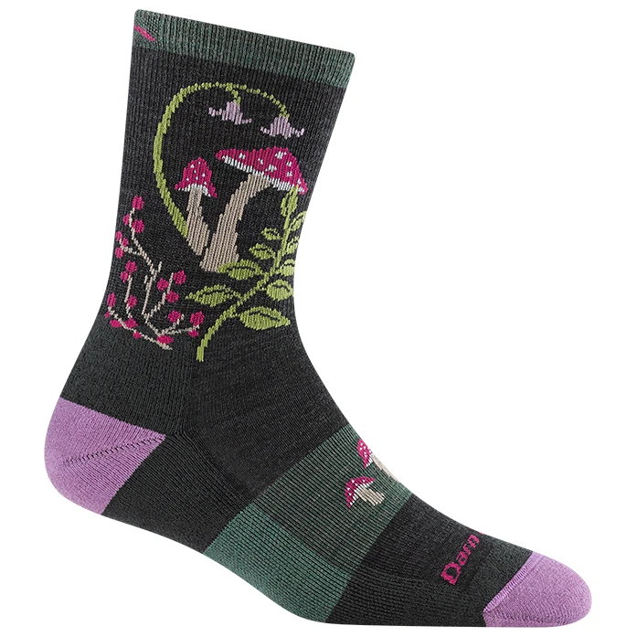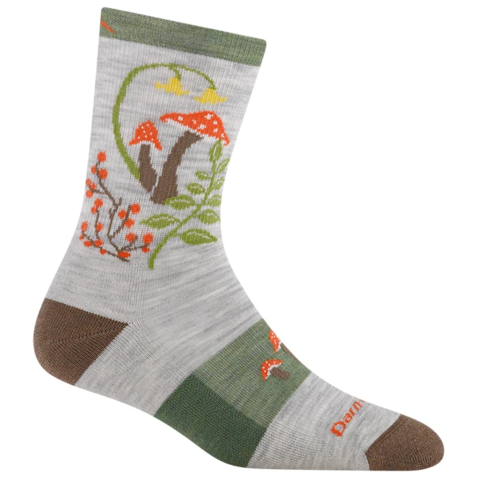 Жіночі шкарпетки Mellow Mushrooms Micro Crew Легкі з амортизацією поєднують легке наповнення, повітропроникність та надійний крій для комфорту під час ходьби по стежках. Висота micro crew становить приблизно 19 см від п'яти до манжети, а шкарпетки сягають приблизно 13 см над низьким туристичним черевиком, або трохи вище краю класичного трекінгового черевика.